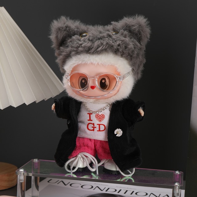 これ一つでおしゃれなフルコーデが完成!Labubu ネコ耳付きK-POP風 7点着せ替えセット15cm 17cm対応 おしゃれなフルコーディネート