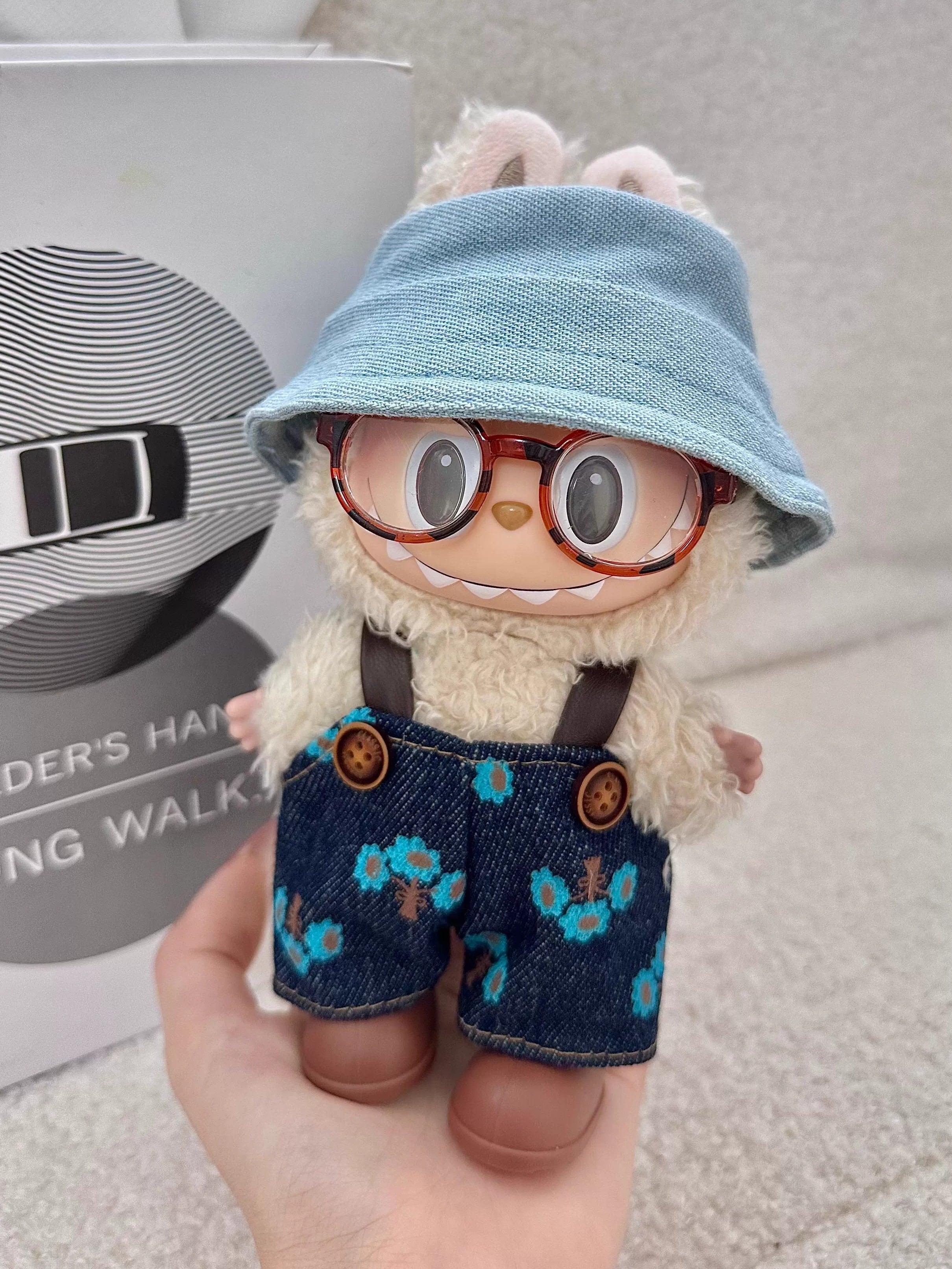 【ハット+サロペット+靴+メガネ】ラブブ 小花プリント4点セット サロペット着せ替え 全3世代対応 バケットハット付き