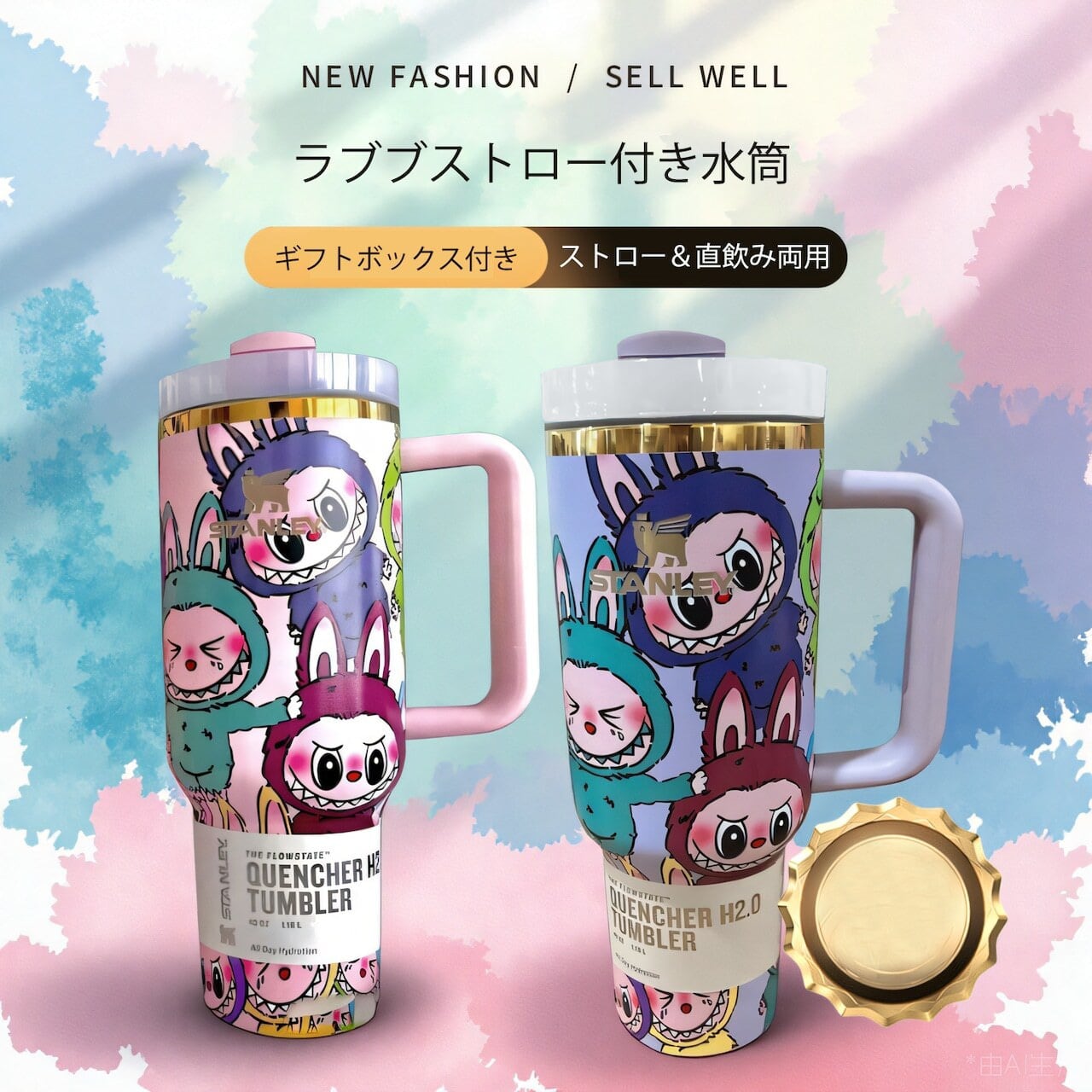 【商品名】2色展開 ブブ 超かわいい 魔法のコップ 保冷タンブラー ストロー付き