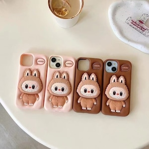 【商品名】2色展開 立体ラブブ 伸缩スタンド スマホケース 3Dシリコン デザイン