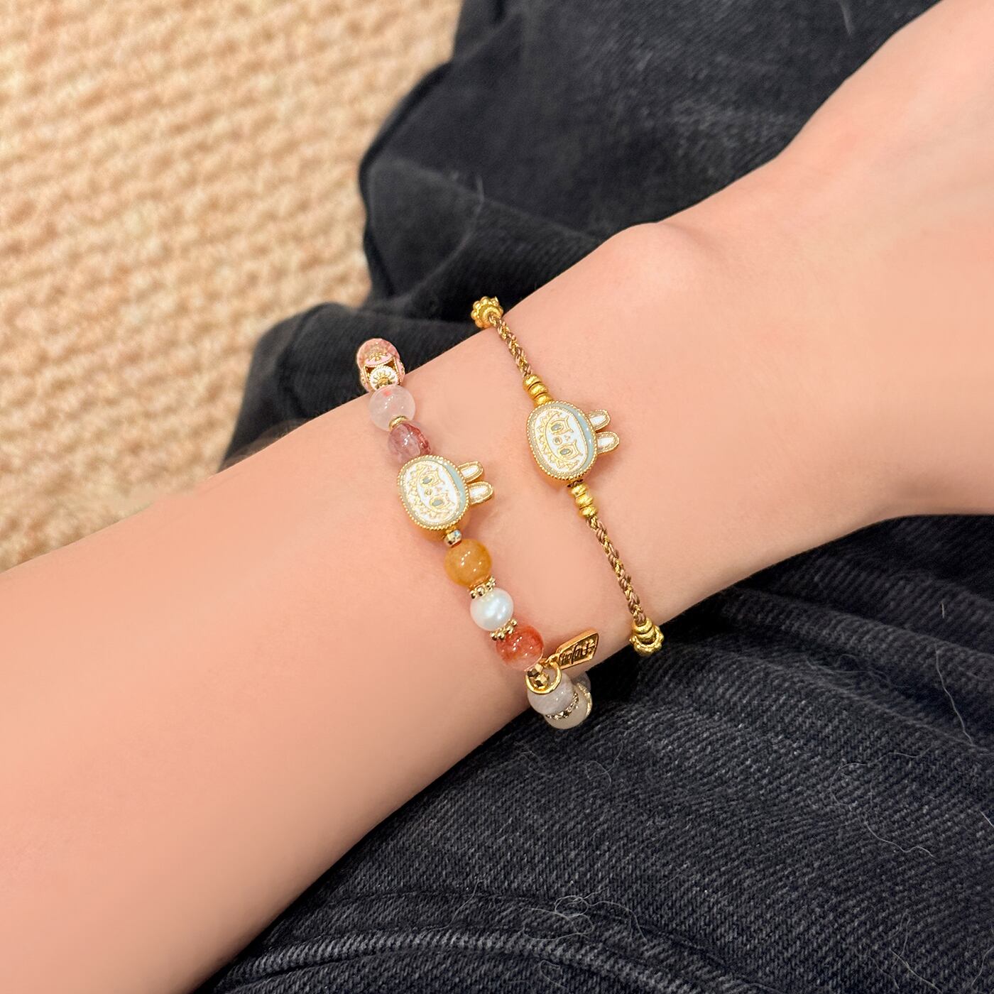 天然石×パール ラブブ 2WAYブレス[17cm/34cm] Labubu 氷透き 4色展開 ペアリング・親友マッチ