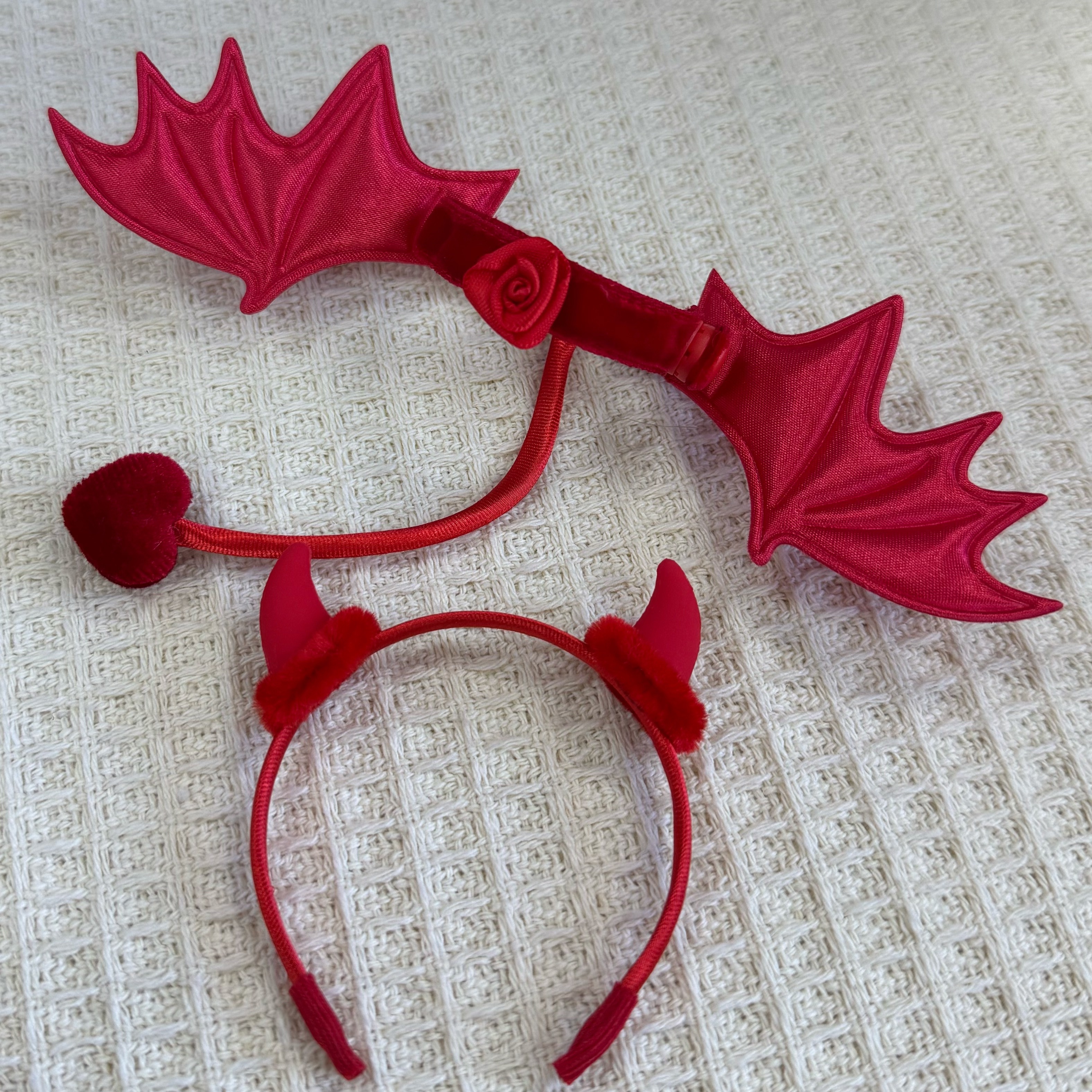 【ふっくら羽根+悪魔ヘアピン】ラブブ 着せ替え 小悪魔セット ふっくら羽根+悪魔ヘアピン ルビーレッド (詰め綿入り)