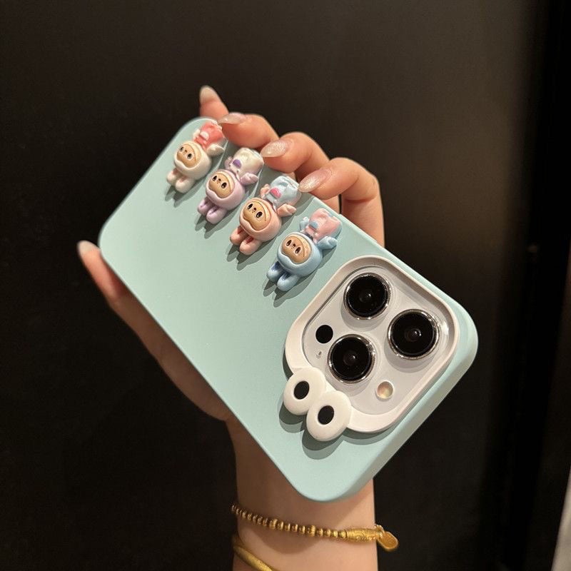 【商品名】ラブブ風スマホケース 立体チャームストラップ付き 耐衝撃 iPhone ケース 水色 夏のおしゃれ 上品 かわいい デザイン