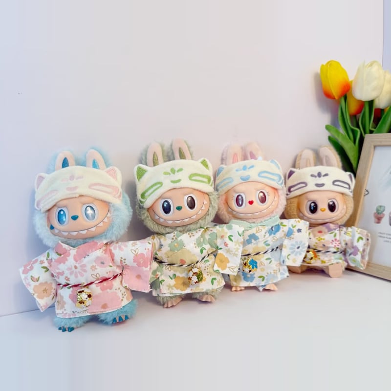 【浴衣+キツネマスク】ラブブ 和服衣装セット 17cm用 Labubu 和風着せ替えセット ナチュラル可愛い ドール着せ替え 花柄 癒しの可愛いスタイル