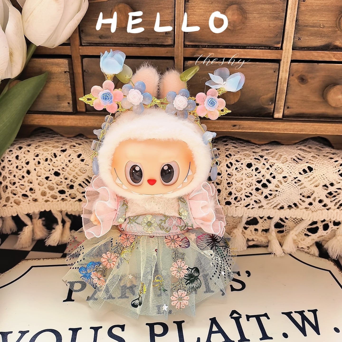 ラブブ 17cm ドール服 中国風漢服 蝶モチーフ刺繍 フェアリードレスセット 人形衣装 刺繍入り プリンセススタイル