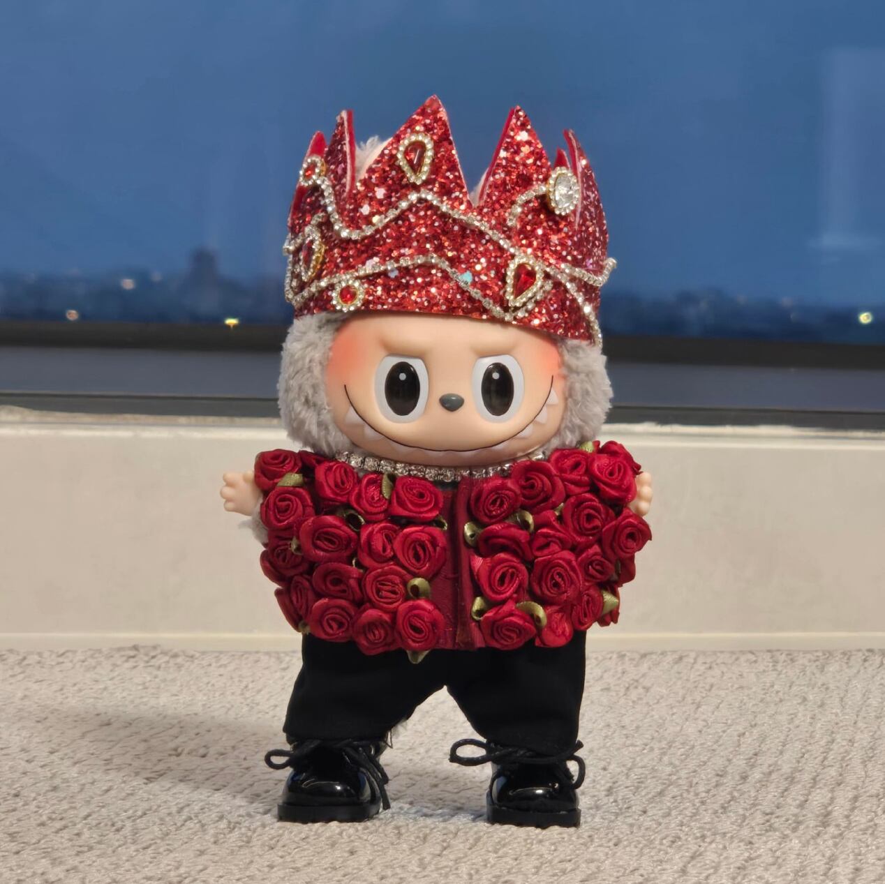 Labubu ドール服フルセット ラブブのコンサート衣装を再現!赤いバラのクールな6点セットでおしゃれなコーデを決めよう!全シリーズ対応