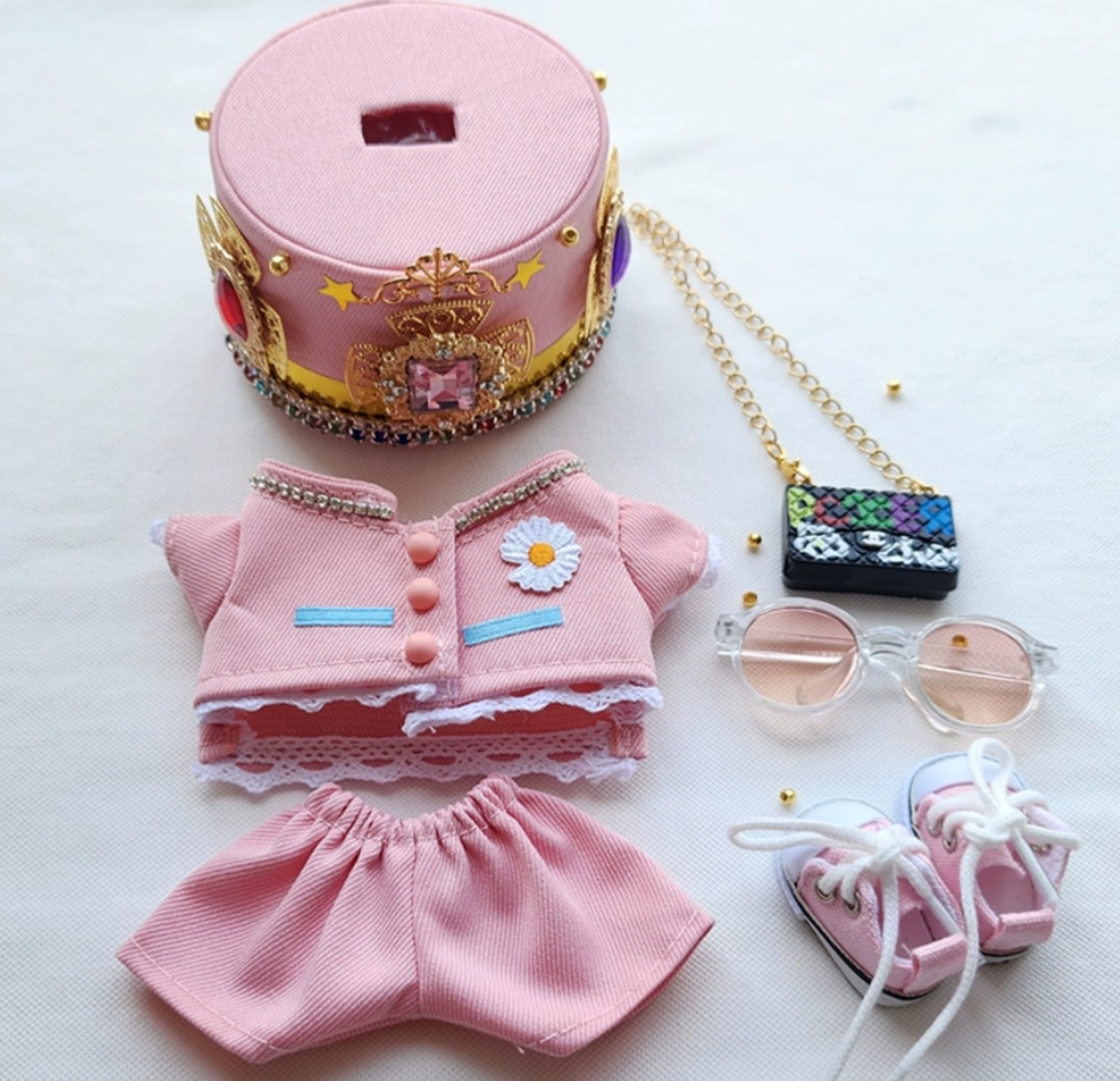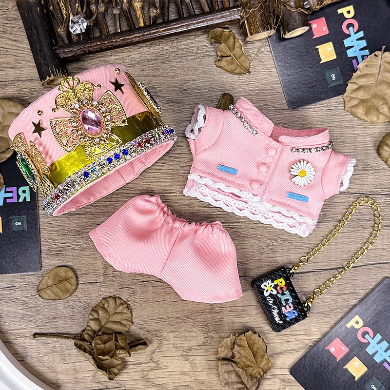 【商品名】Labubu 1 2 3 世代 17cm 15cm ドール服 ピンク 王冠 コーデセット ゴシック 可愛い 華やか クール ボーイッシュ