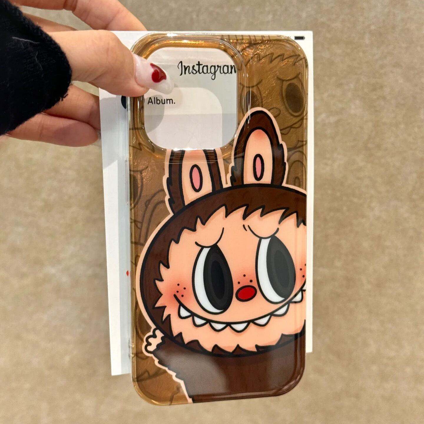 【商品名】【iPhone ケース】 ラブブ iPhone ケース ブラウン系 でか顔デザイン 光沢あり 耐衝撃 可愛い おしゃれ