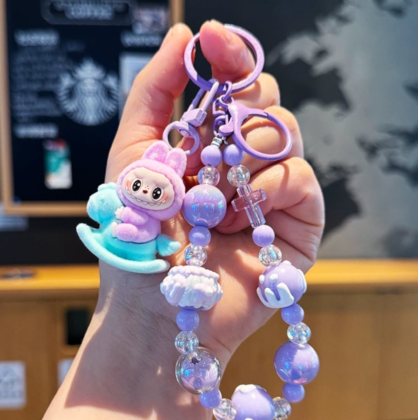 【ビーズキーホルダー】激可愛い!ラブブ ロッキングホースシリーズ 可愛いカラーリング 車のキーホルダー バッグチャーム ストラップ付き