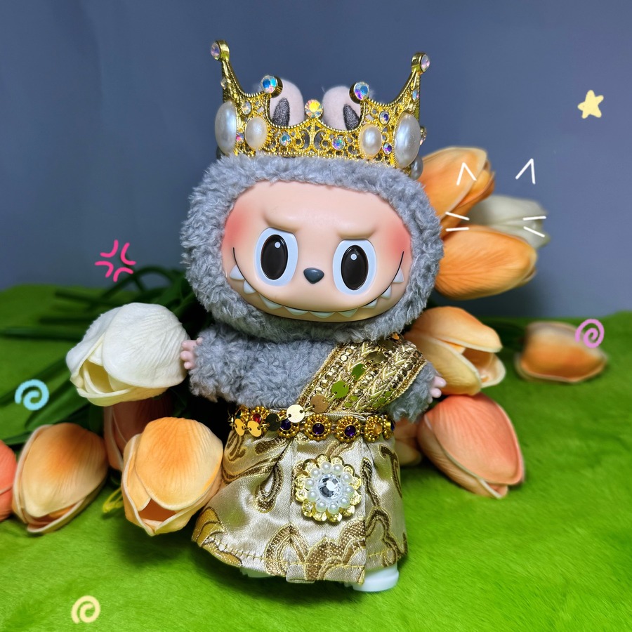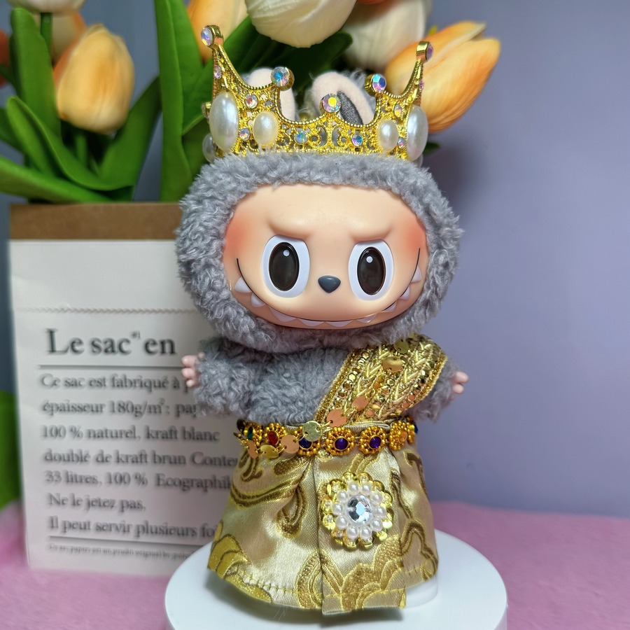 【2点セット+王冠】タイ式クールでかっこいい!labubu タイ宮廷風 ラブブ ドール衣装 17cm ゴージャ 異国情緒あふれるおしゃれなデザイン 人形服