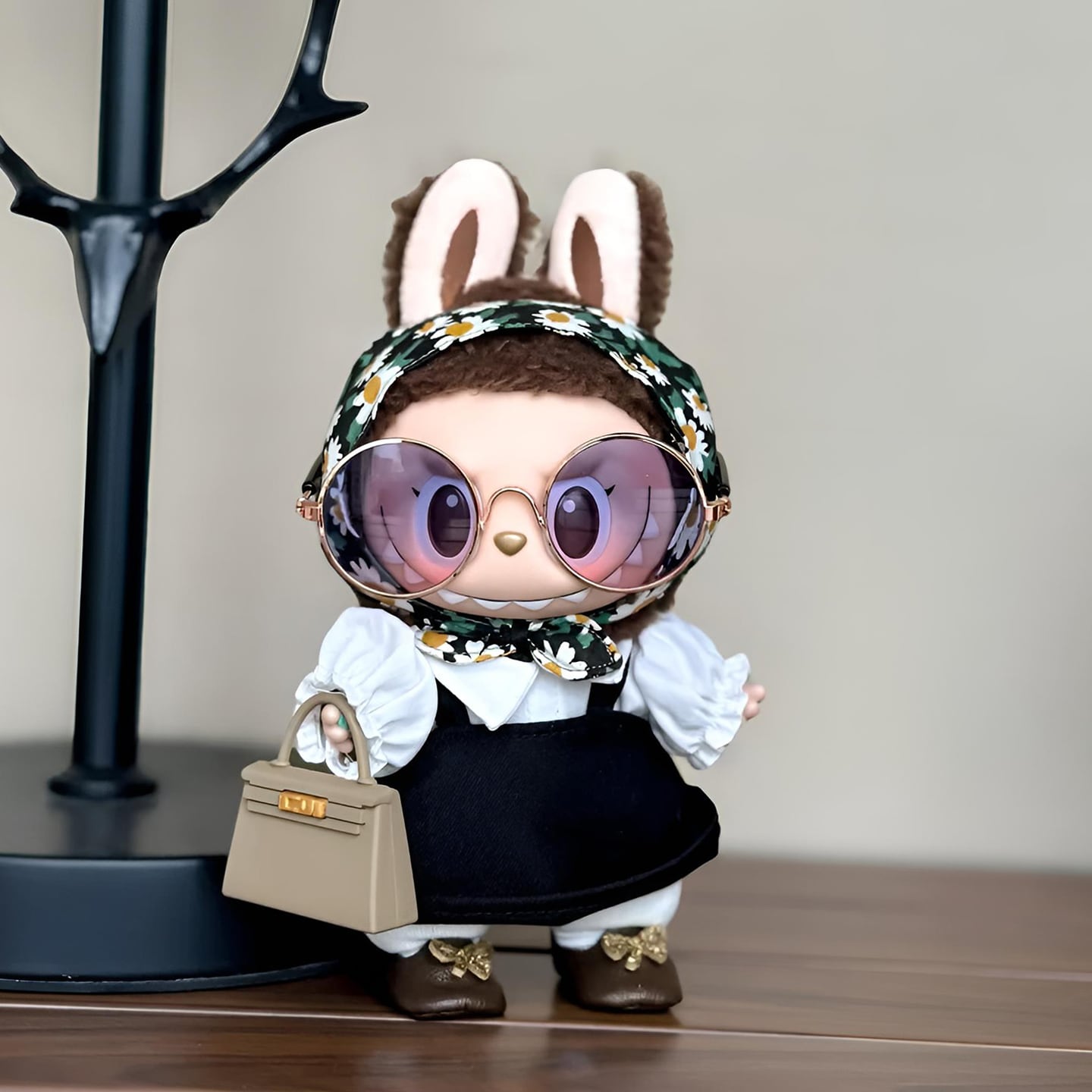 【ブラウス+吊りスカート+スカーフ+サングラス+ミニバッグ】Labubu おしゃれコーデ完結セット♪ 全5アイテム付き 人気の貴婦人スタイル お姫様 貴婦人スタイル フルセット 17cmドール服