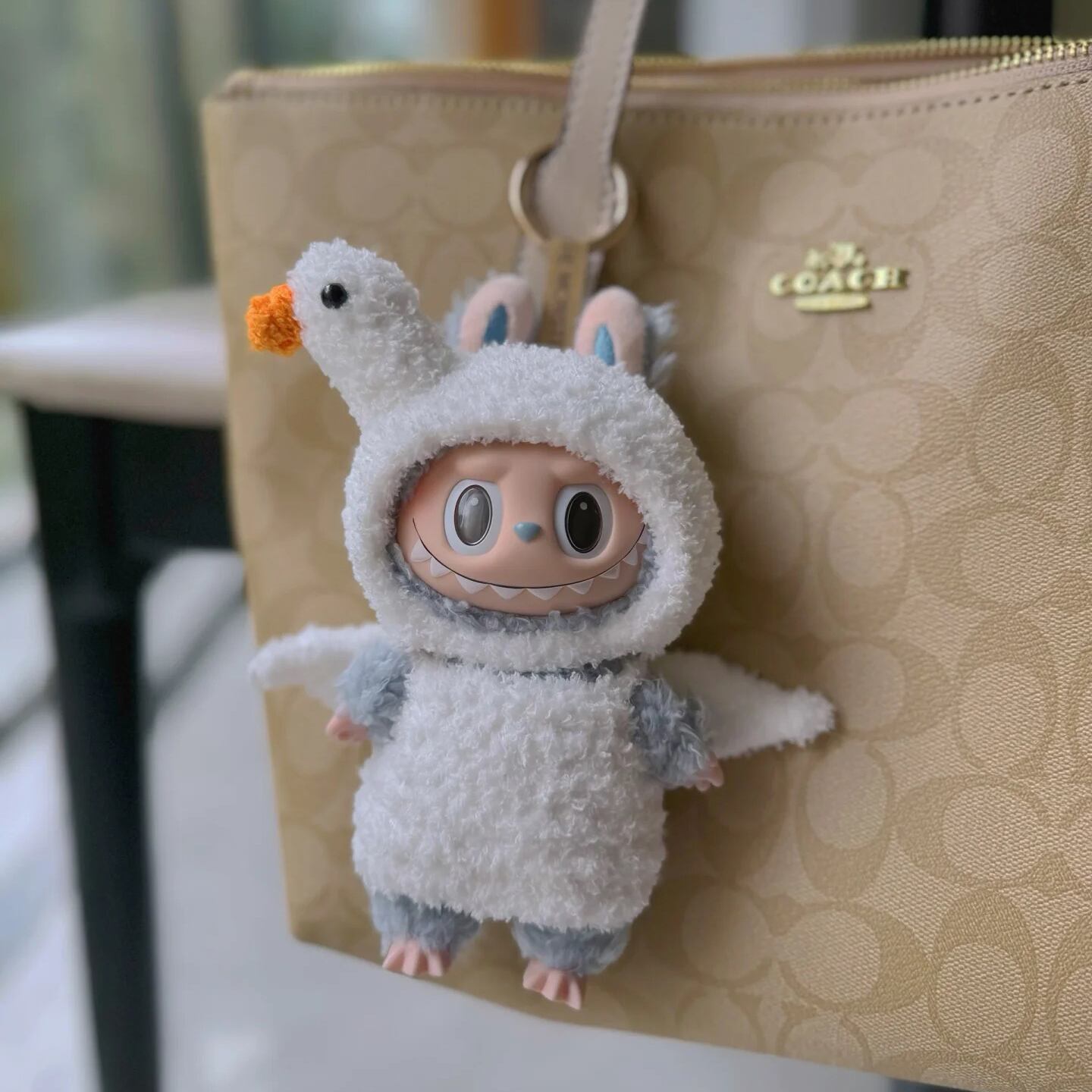 【帽子+オールインワン】labubu 白いガチョウさん 動物コスチュームセット 立体 cosplay 着ぐるみ 17cm 全モデル対応