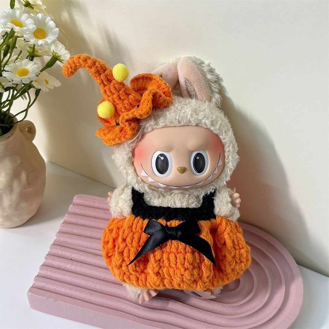 【完全手編み】ラブブ ハロウィン パンプキン コスチューム セット ニット ドール服 17cm 用 一点物