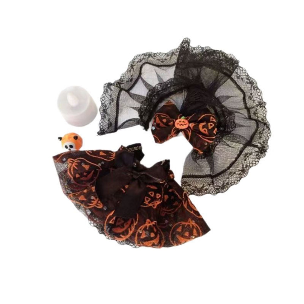 【ハロウィン限定】Labubu 衣装 17cm 用 パンプキンドレスセット(ベール付き)| ラブブ ぬいぐるみ ソフトビニル 用 コスチューム