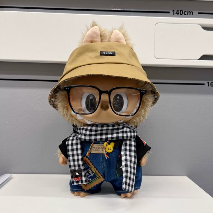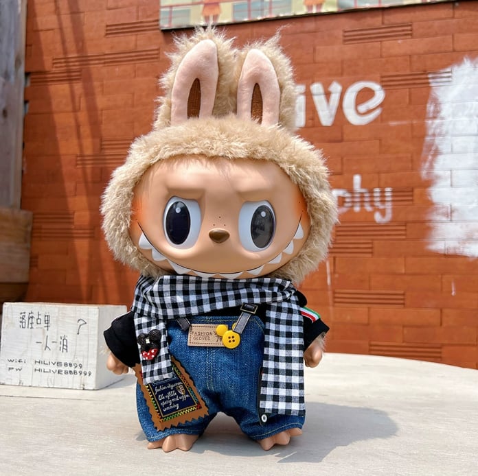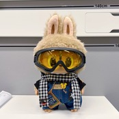 【ラブブ 38cmドール服】ラブブ 服 38cm 可愛くて元気な造型!マフラー オーバーオール セット デニム チェック 着せ替え 冬コーデ キュート