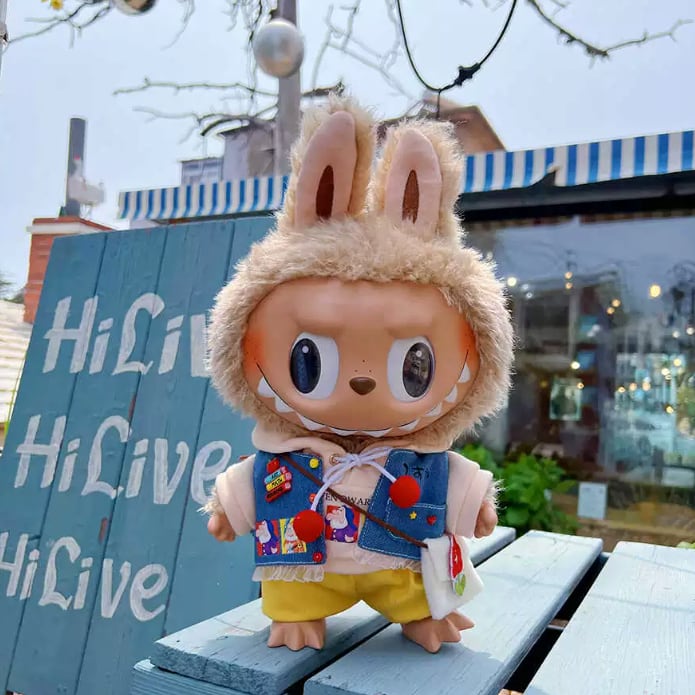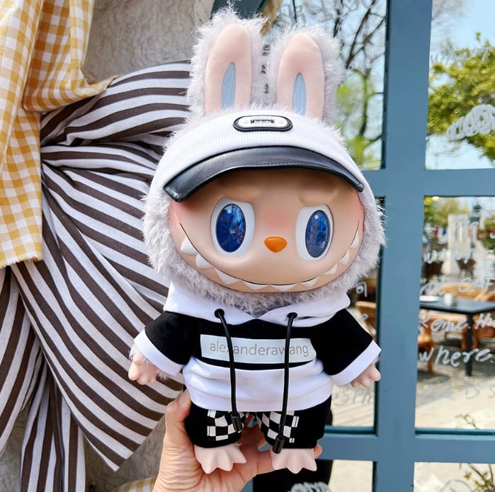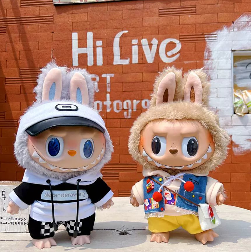 【超クール】全身コーデ!Labubu ラブブ 38cm ストリートファッション 衣装セット おしゃれな着こなし スカートパンツ付き
