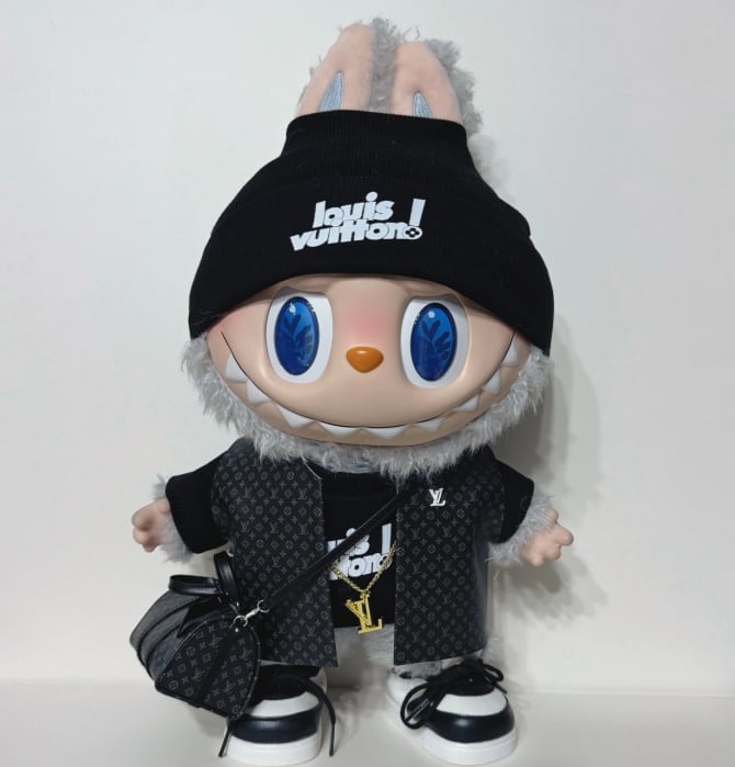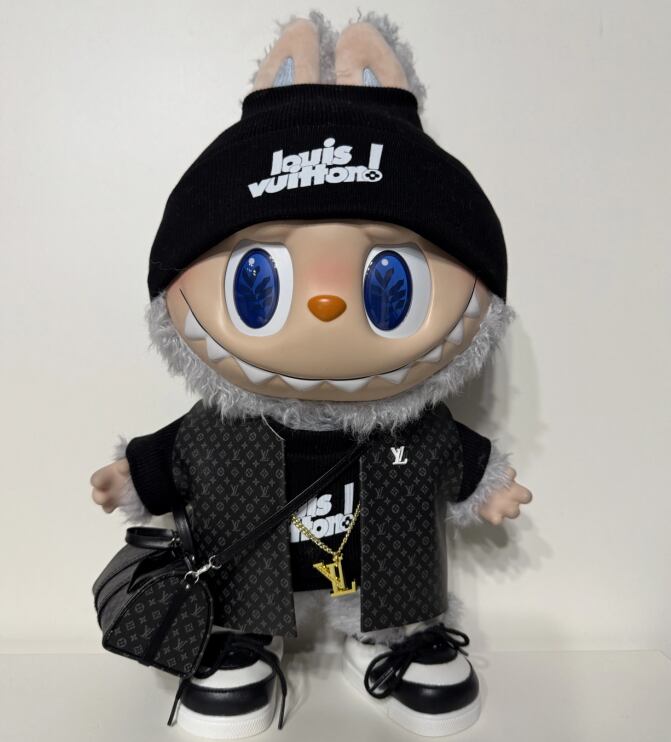 ラブブを超おしゃれに!| Labubu 38cm ニット帽コーデ ストリートでキュートな究極の一枚