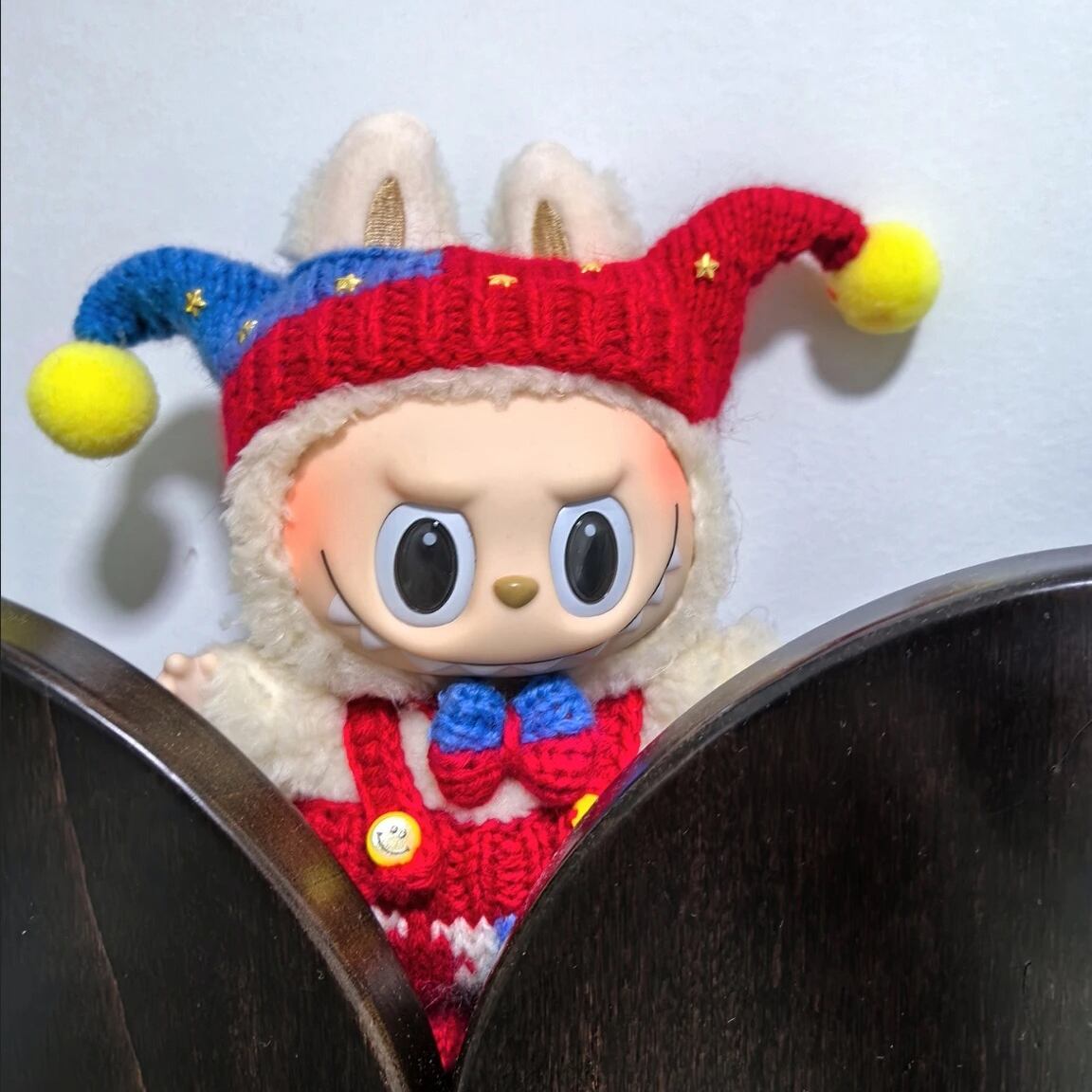 【ハロウィン限定】labubu ラブブ 1/2/3世代 共用 道化師 コスチューム ニット セット キモカワい 手編み風 ボンボン 付き ゆかいな 仮装 衣装