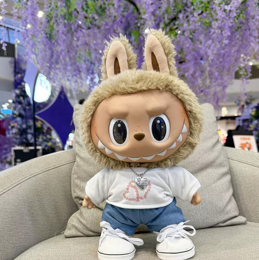 【パーカー&デニム&ネックレス】labubu 38cm 3点セット ラブブ ストリート ファッション セット クール おしゃれ パーカー デニム 大首领 着せ替え