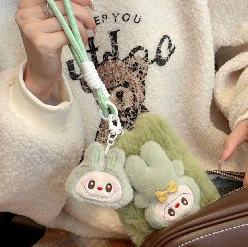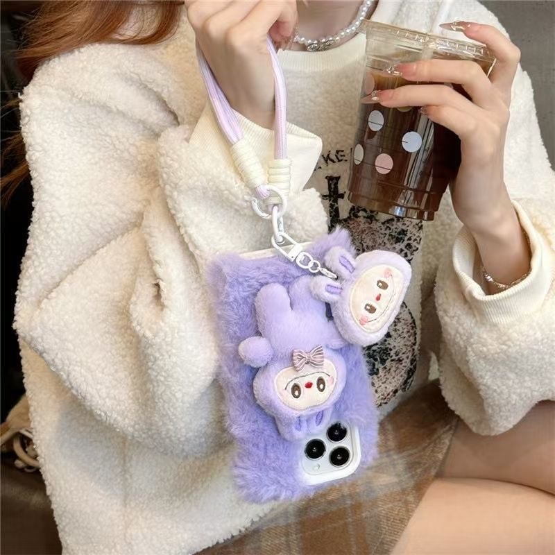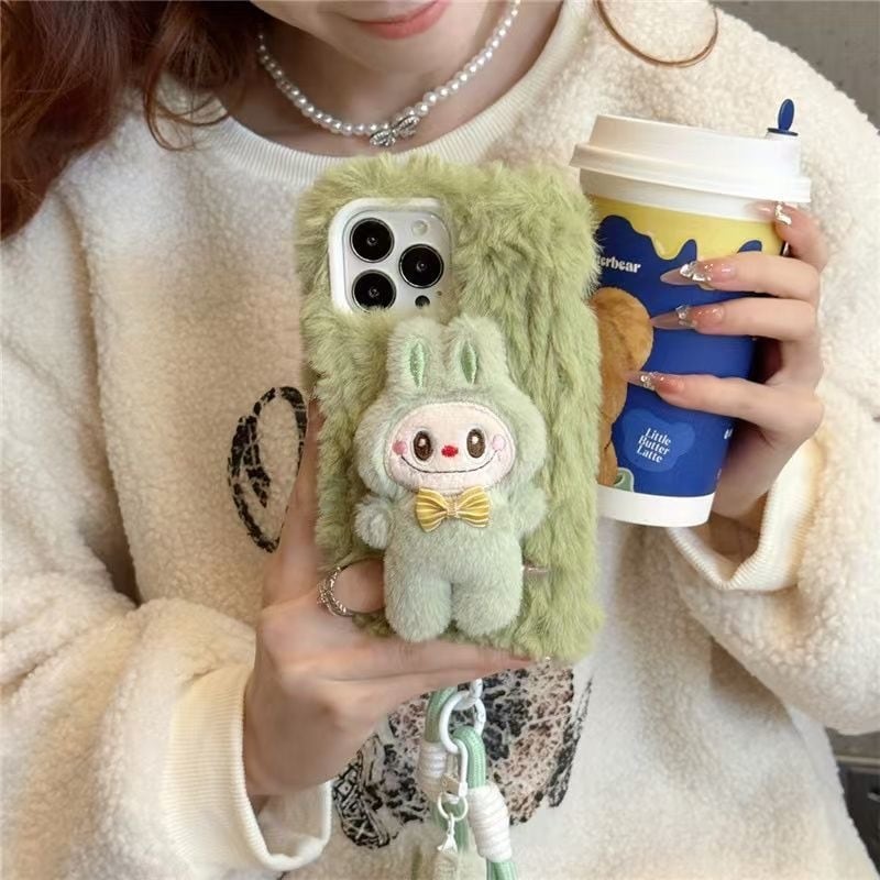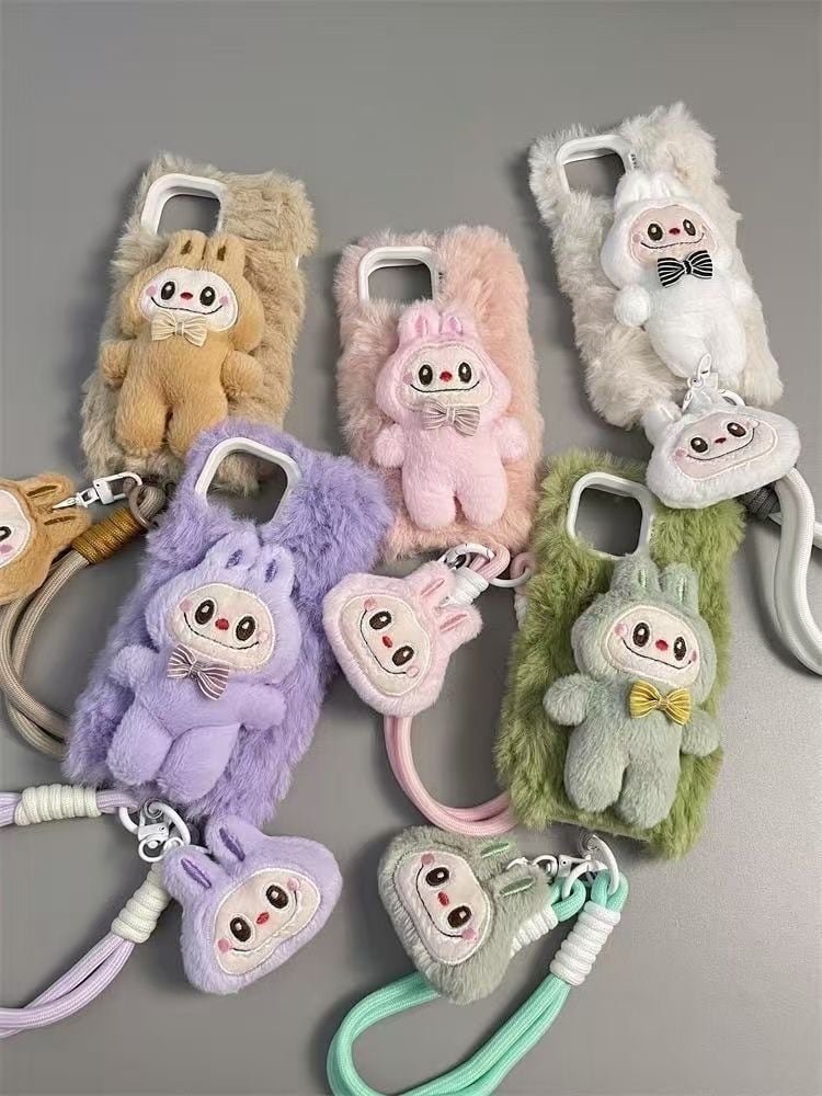 【iPhoneケース】立体 ラブブ labubu めちゃ可愛い ラブブ 着ぐるみ 風 スマホケース セット 立体 ぷくぷく 毛糸 ストラップ 付き 激かわ グッズ