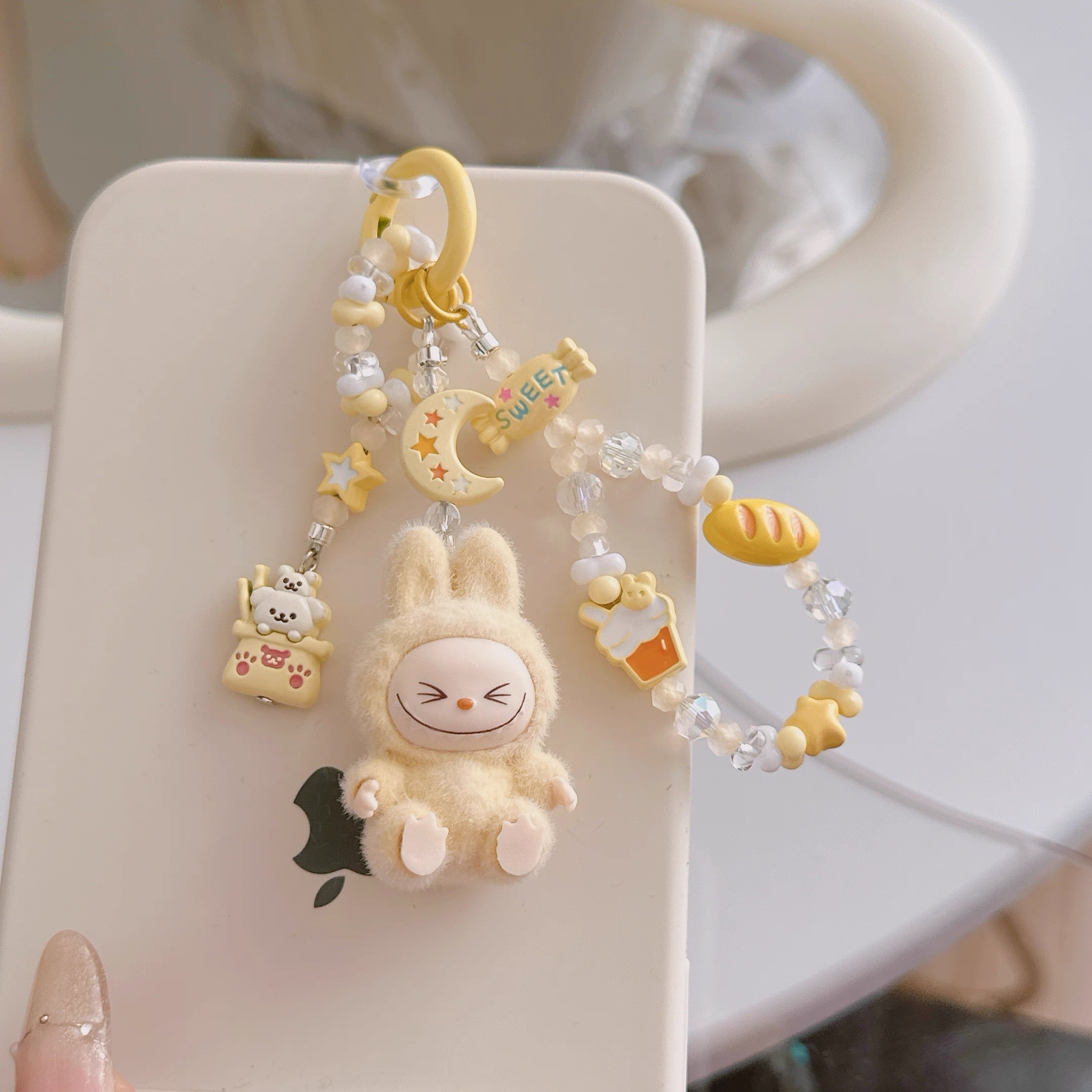 【labubuキーホルダー 7色展開】ラブブ ムーン ビーズ キーホルダー 月のデザイン スマホストラップ キーホルダー バッグチャーム 車載 アクセサリー 可愛い 大人可愛い