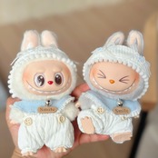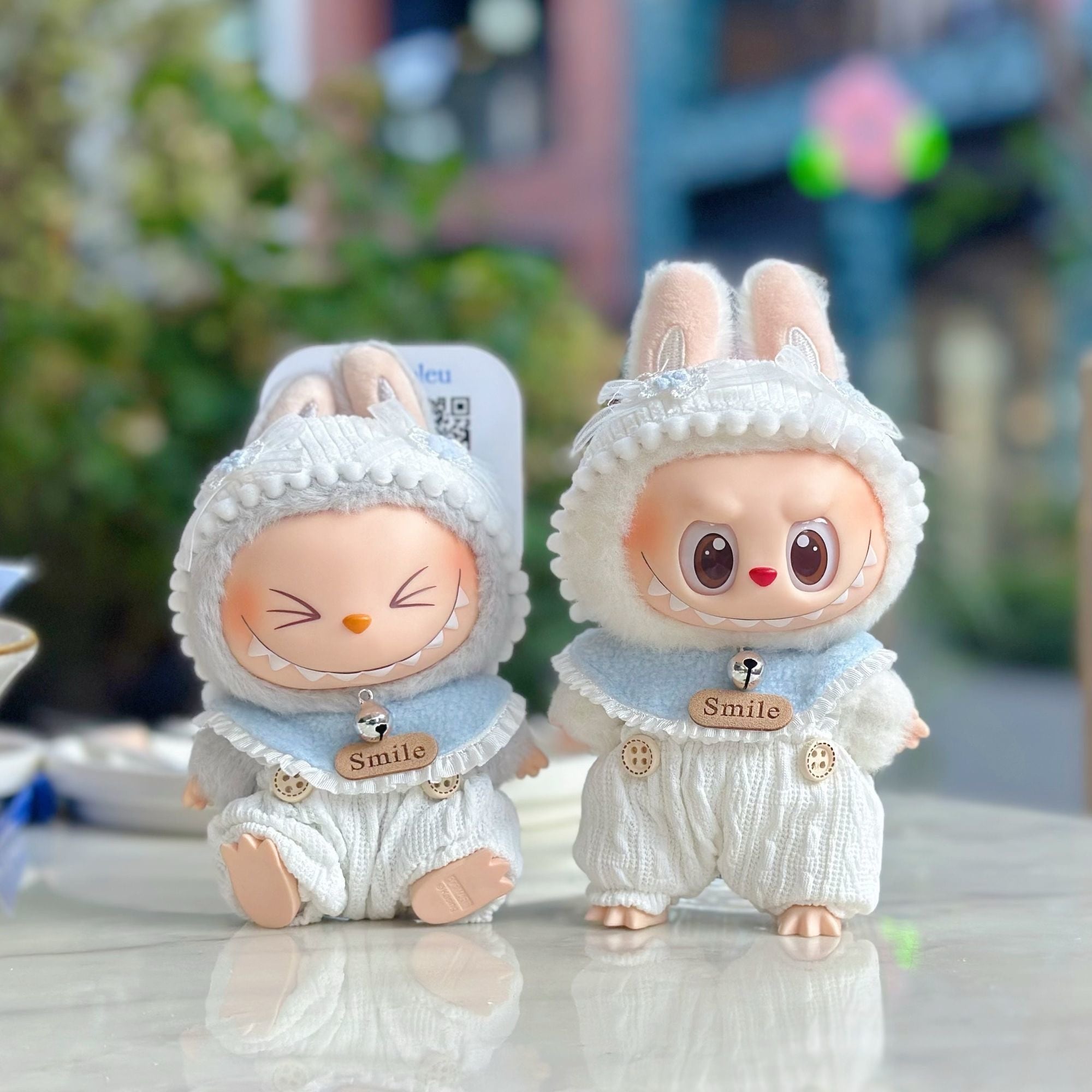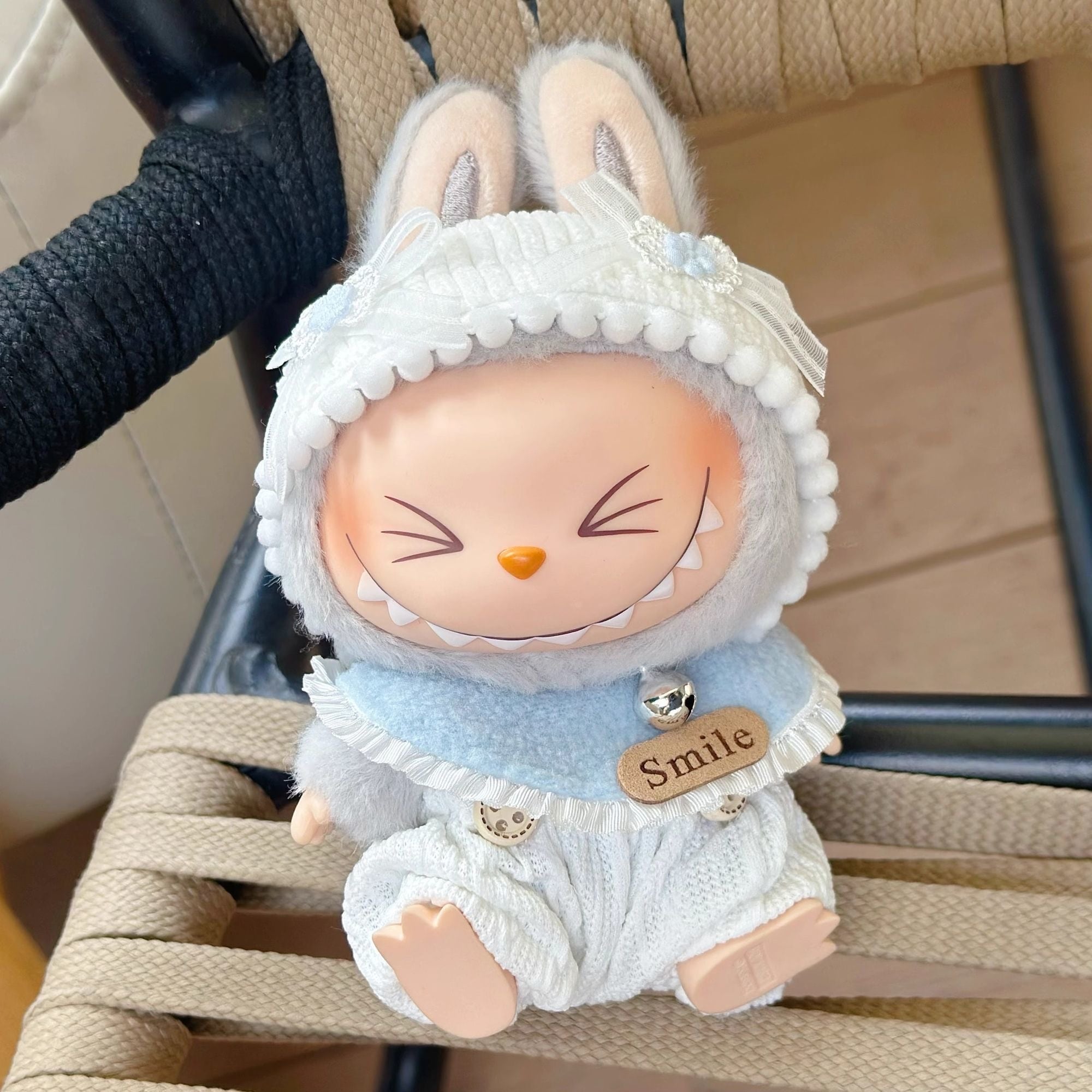 【ラブブ 着せ替え服】labubu めっちゃかわいい!ラブブちゃんのベビー服♪ スマイリーベル 青白 3点セット 着せ替え 15cm 17cm ふわもこ 萌え爆発!萌え ギフトに最適