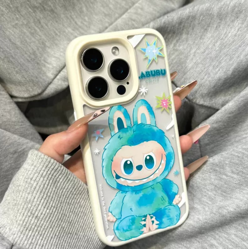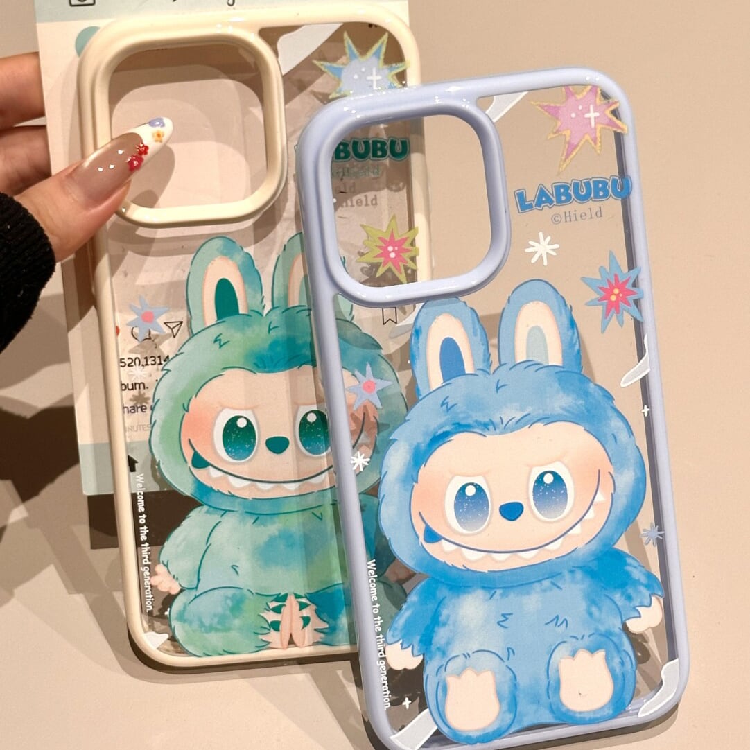 【50%OFF 割引】labubu 超可愛い!ラブブ デザインiPhoneケース♡ インスタで話題の韓国風 全周り保護 ミントグリーン/ブルー ホワイトフレーム 16/15/14/13 ProMax対応 女子に人気