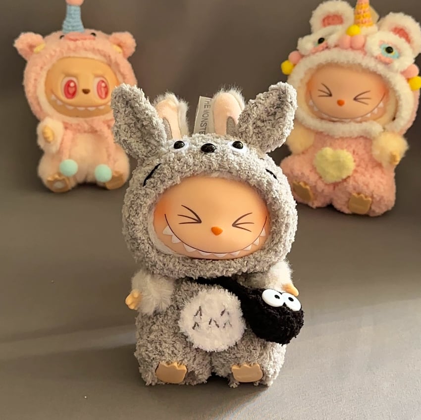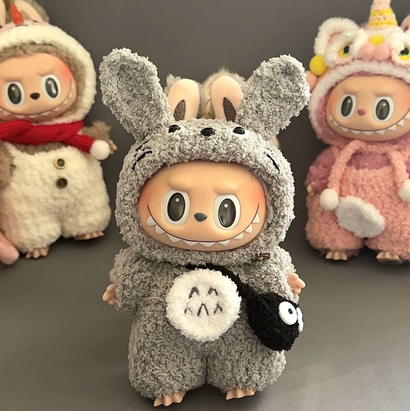 【トトロコスチューム 3点フルセット】labubu ラブブ 衣装 1代2代兼用 ニット ドール服セット ふわふわ柔らか 立ち座り対応 大人かわいい 癒しグッズ 可愛いセット
