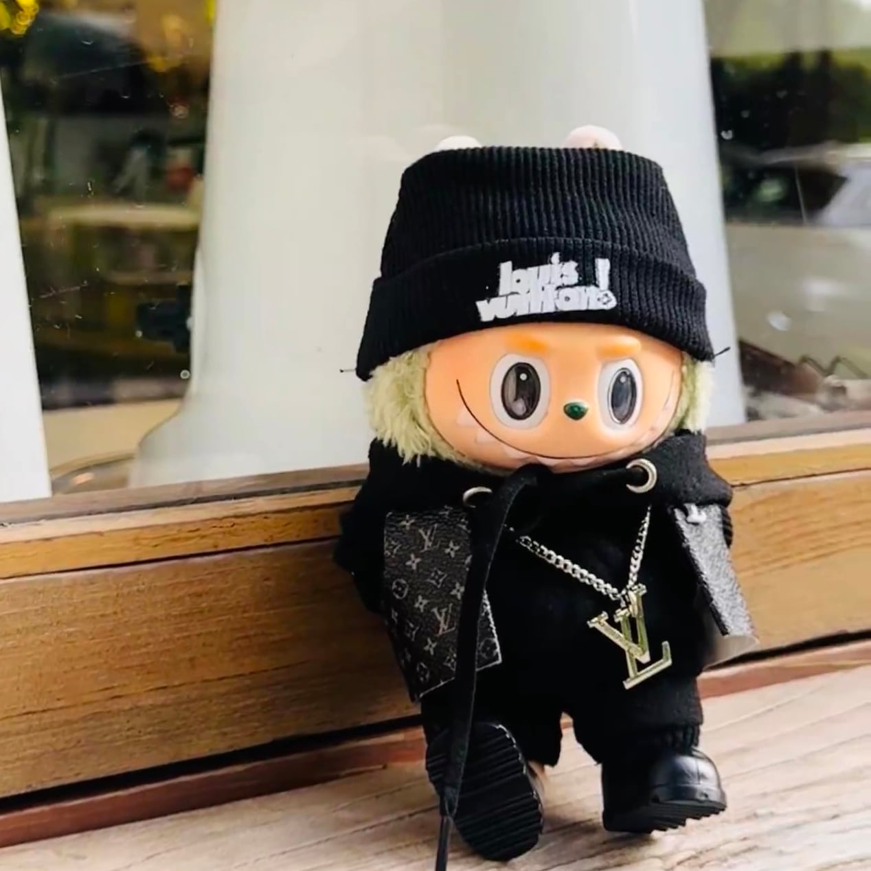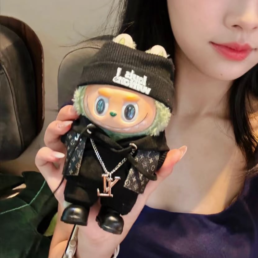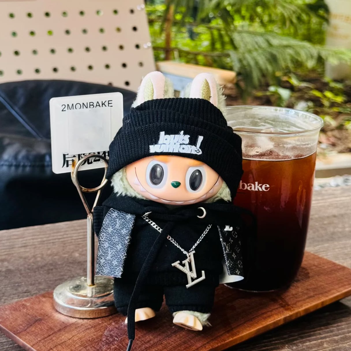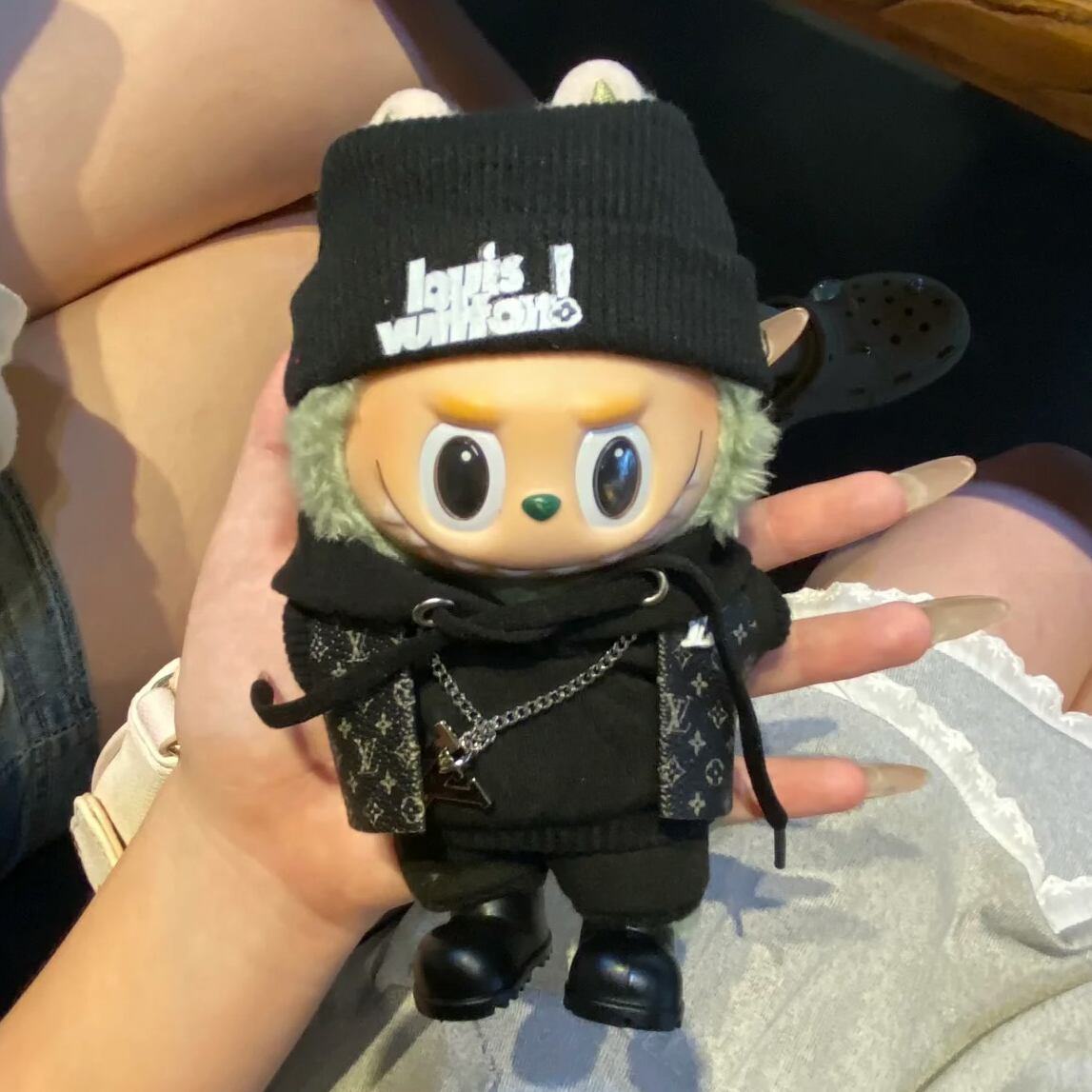 コーデ完成!クール Labubu 服 17cm用 全身コーデ 8点セット 黒基調 クール おしゃれ かっこいい 高級感