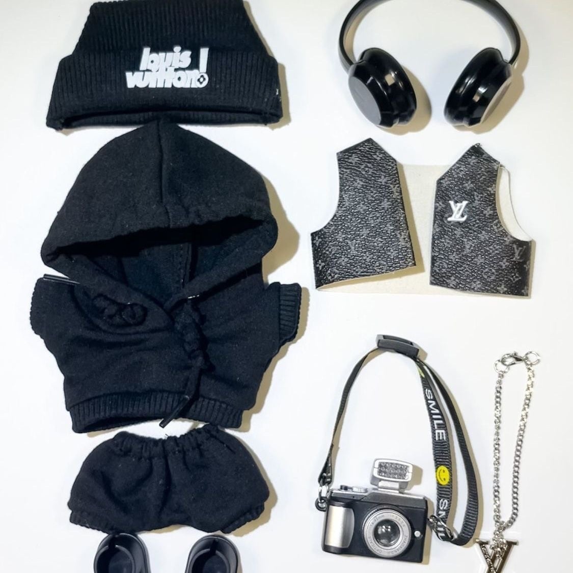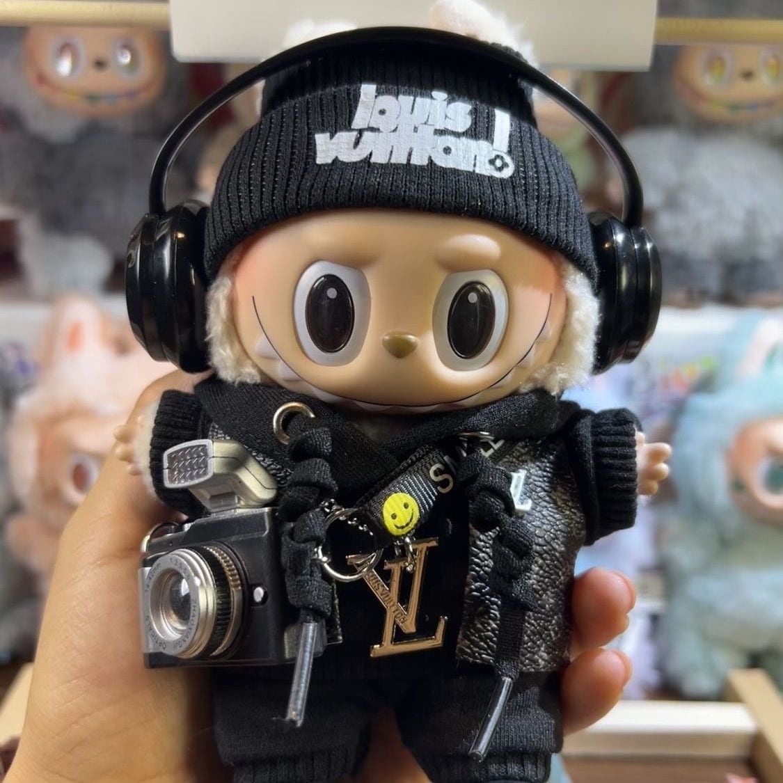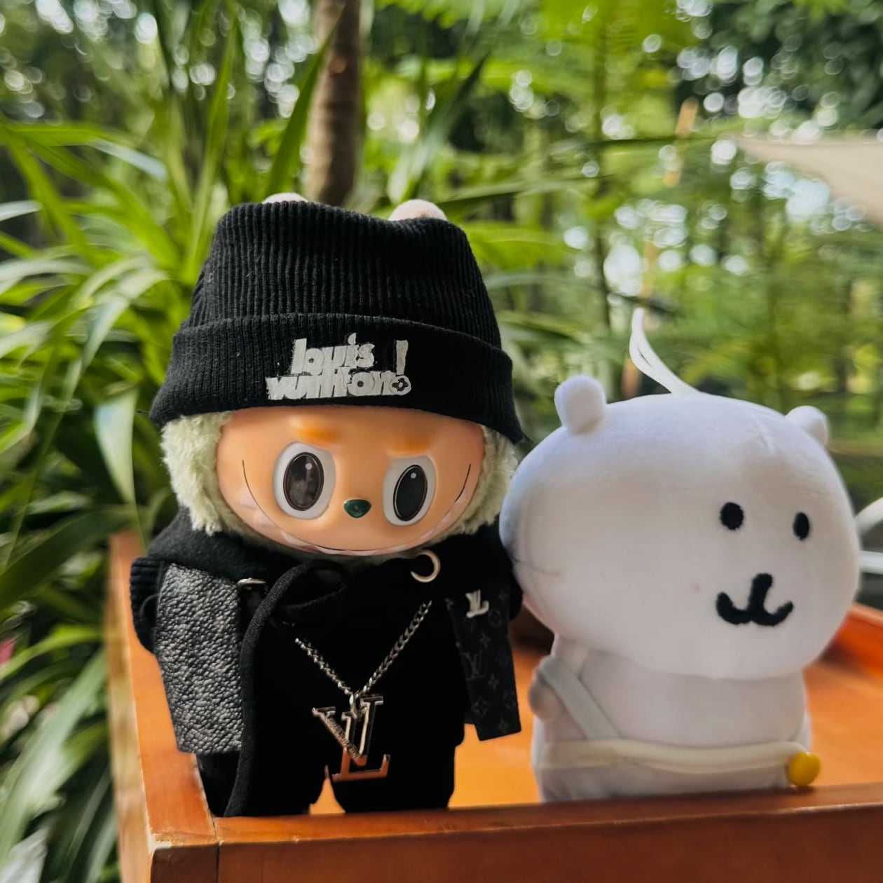 コーデ完成!クール Labubu 服 17cm用 全身コーデ 8点セット 黒基調 クール おしゃれ かっこいい 高級感