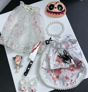 【商品名】Labubu ラブブ ウェディングドレス ハロウィン ゾンビ花嫁 コーデセット フルセット 付属品全部付き 恐怖で可愛い 雰囲気抜群