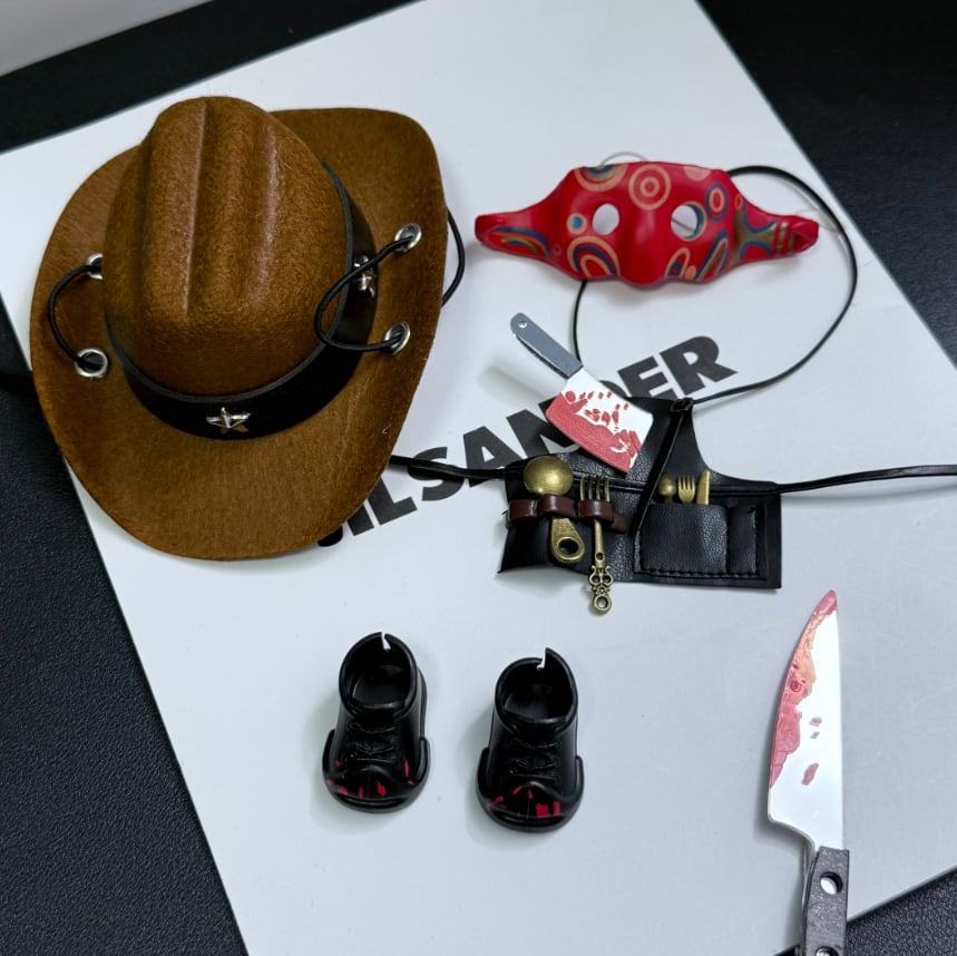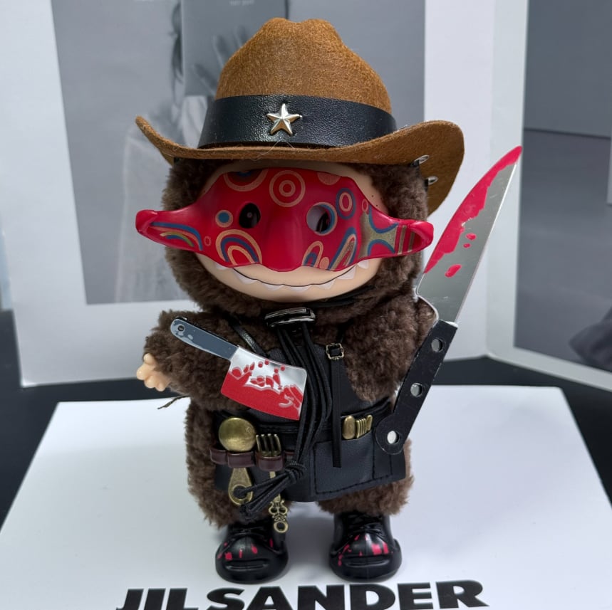 【悪夢の雨夜】Labubu用 殺人鬼コスチューム フルセット 血ぬられた恐怖の雰囲気 ユニークな一品