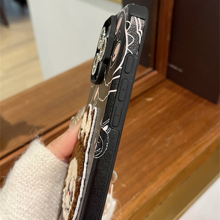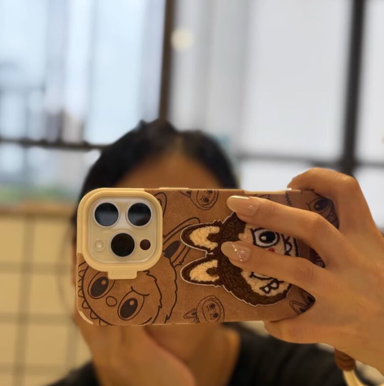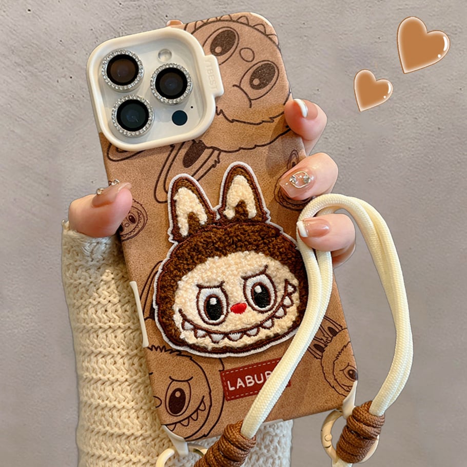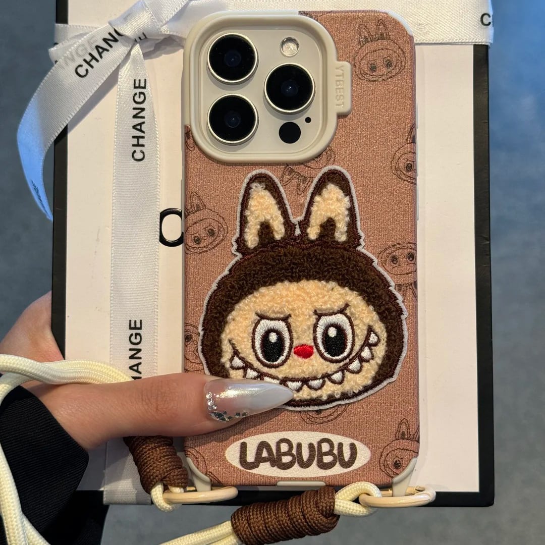 ストラップ付き モフモフ刺繍! Labubu ラブブ iPhone ケース 抜群の可愛さ 可愛い ボア刺繍 携帯カバー 携帯ケース おしゃれ