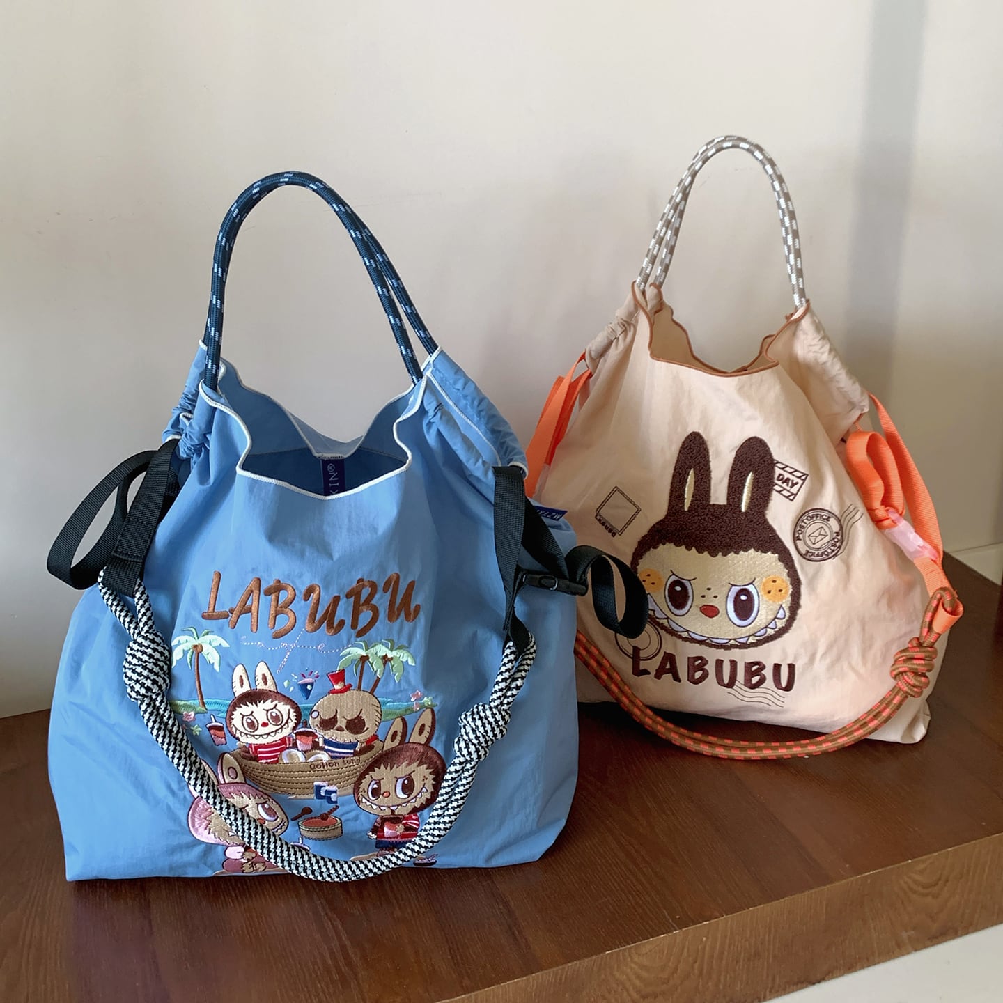 和風のこだわり 刺繍Labubuバッグ!刺繍 ラブブ トートバッグ 防水 新作 ショルダーバッグ レディース カジュアル 多用途 かわいい