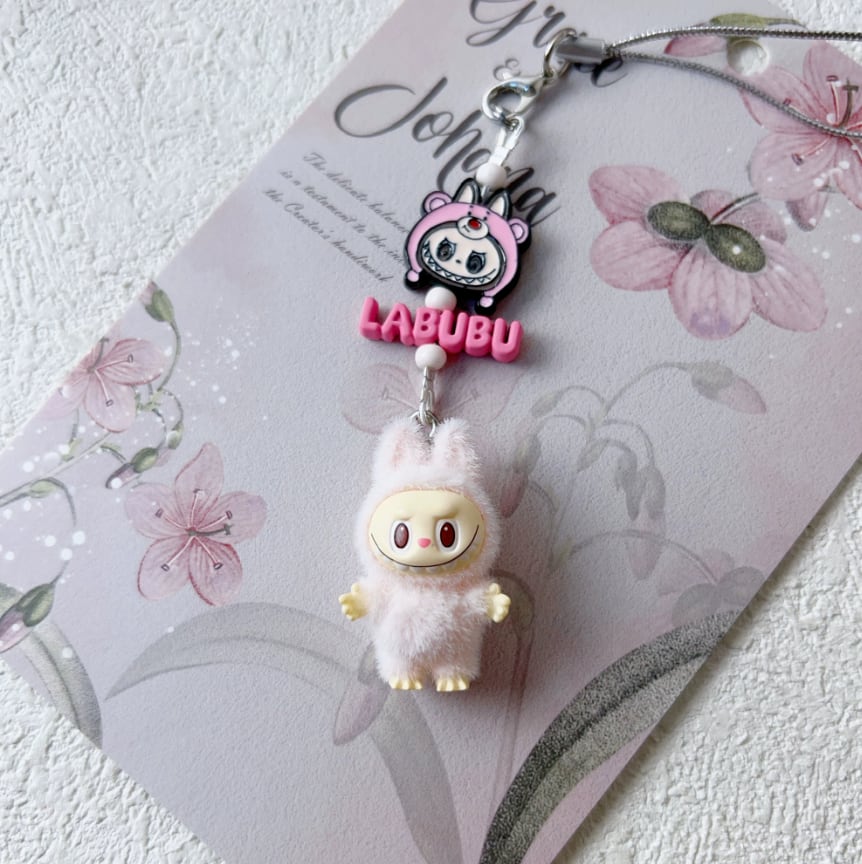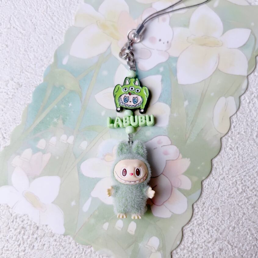 【親友カップルに】ラブブ 車載もOK! スマホストラップ フォトキーホルダー ♪ 手作り Labubu オリジナル とっても可愛い