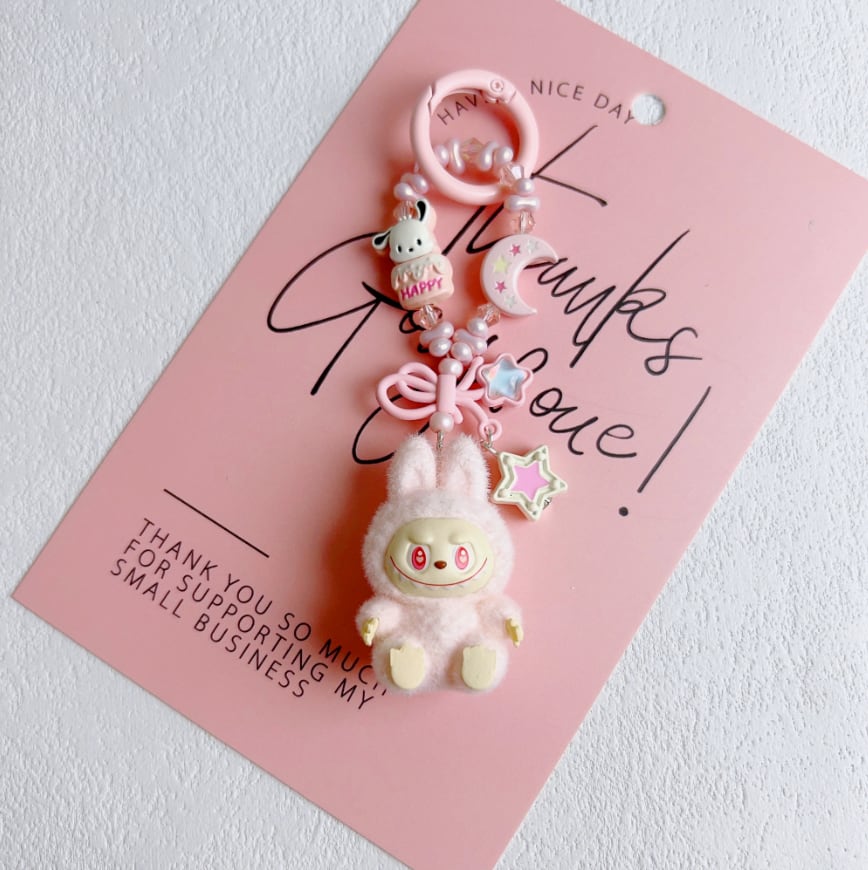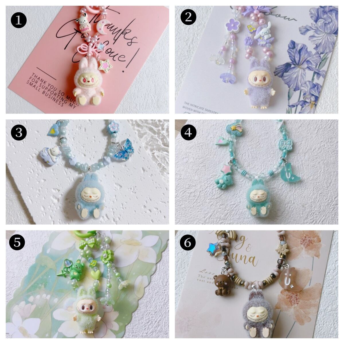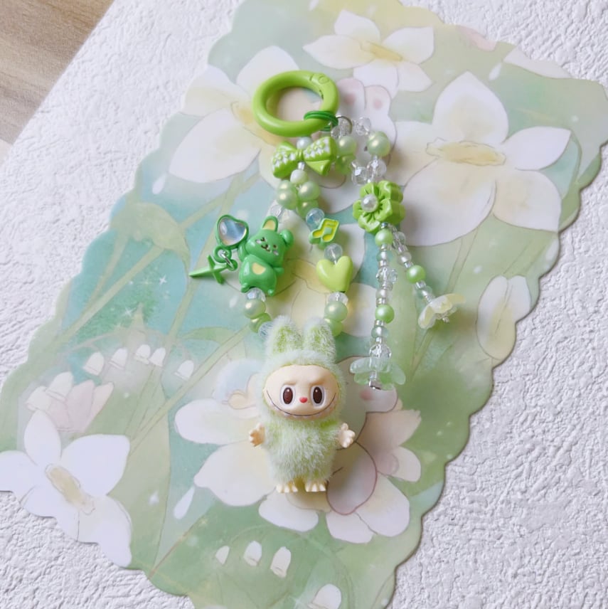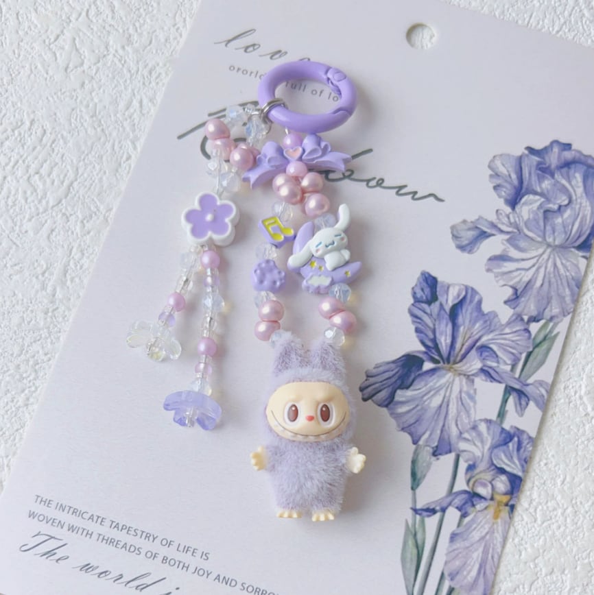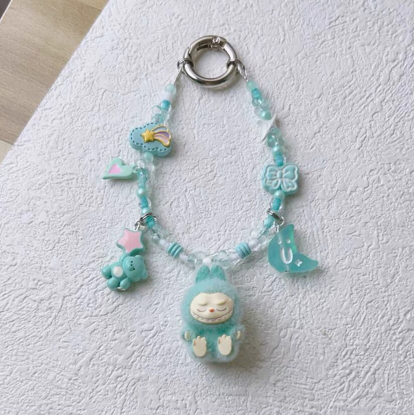 Labubu ラブブ ビーズキーホルダー キラキラ 光る 珠 ビーズ ストラップ キーチェーン 携帯 ストラップ チャーム かわいい 萌