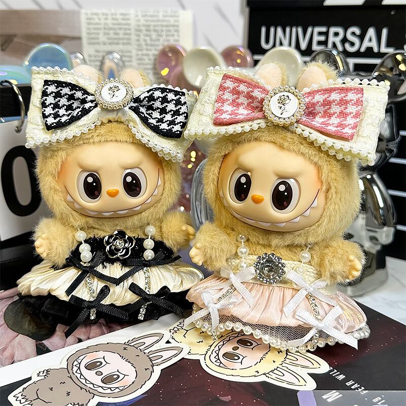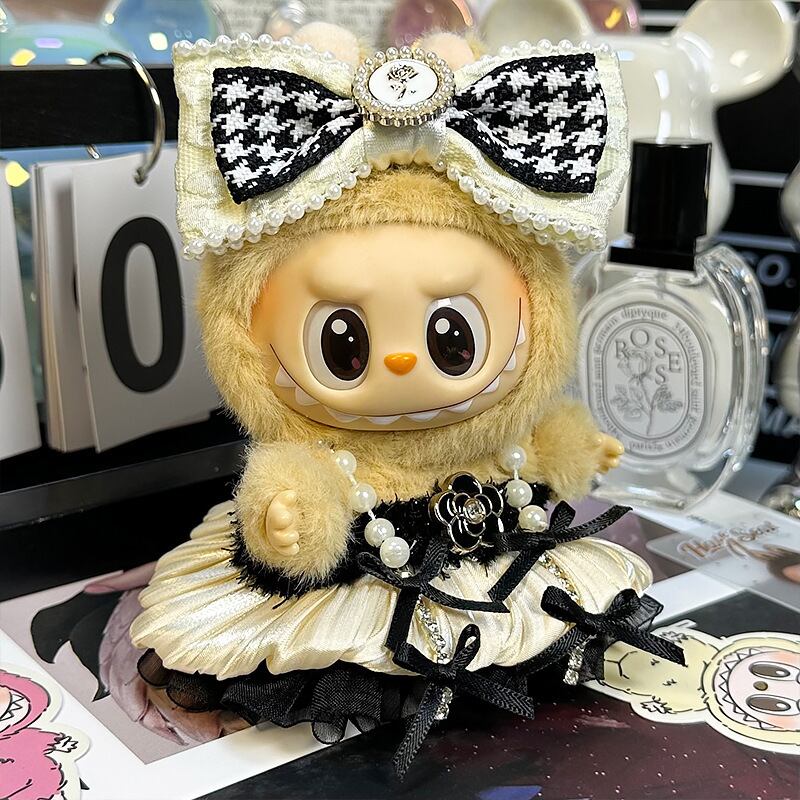 【パリジェンヌ風】Labubu 1・2・3世代 高級感 ドレスセット 貴族風 ストラップドレス 上品で可愛い お嬢様 ドール服 フルセット 15cm/17cm