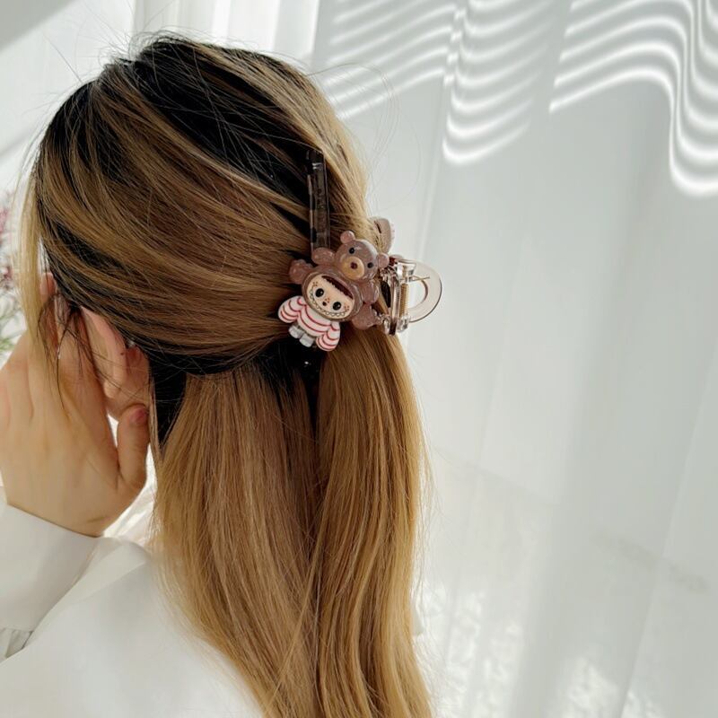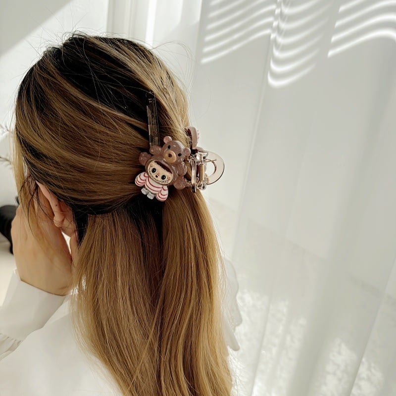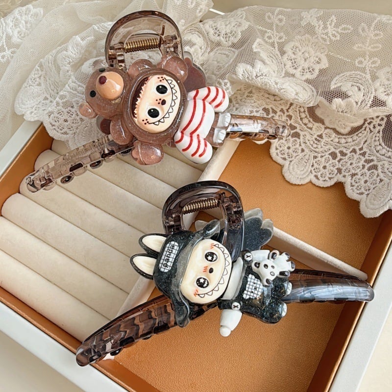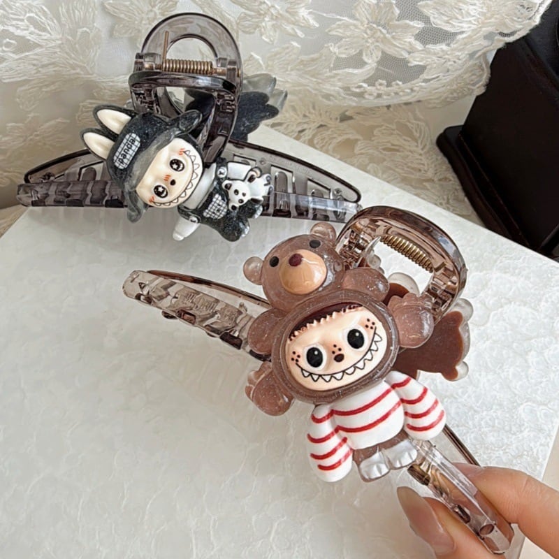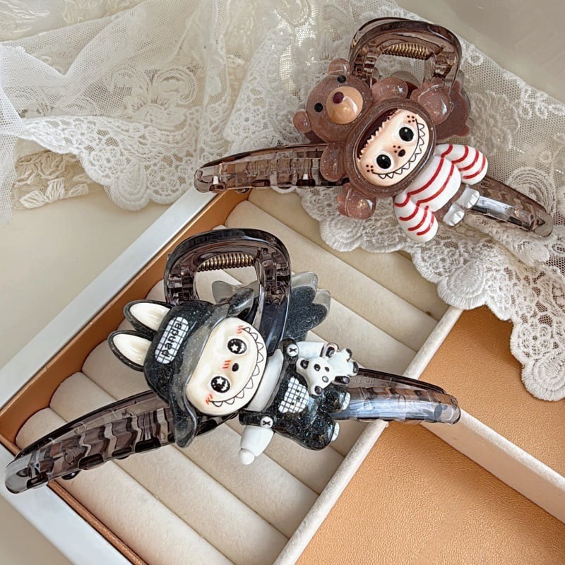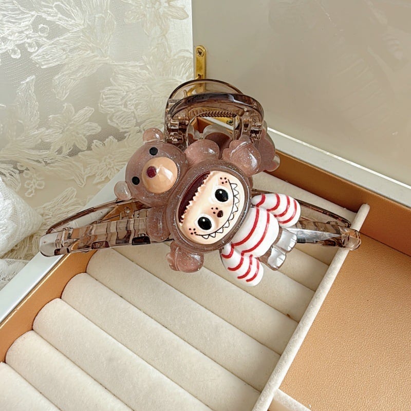 2個入り♥ Labubu風 厚手 ヘアクリップ 大きめ レジン アイストランスペアレント インスタ映え かわいい ヘアアクセサリー
