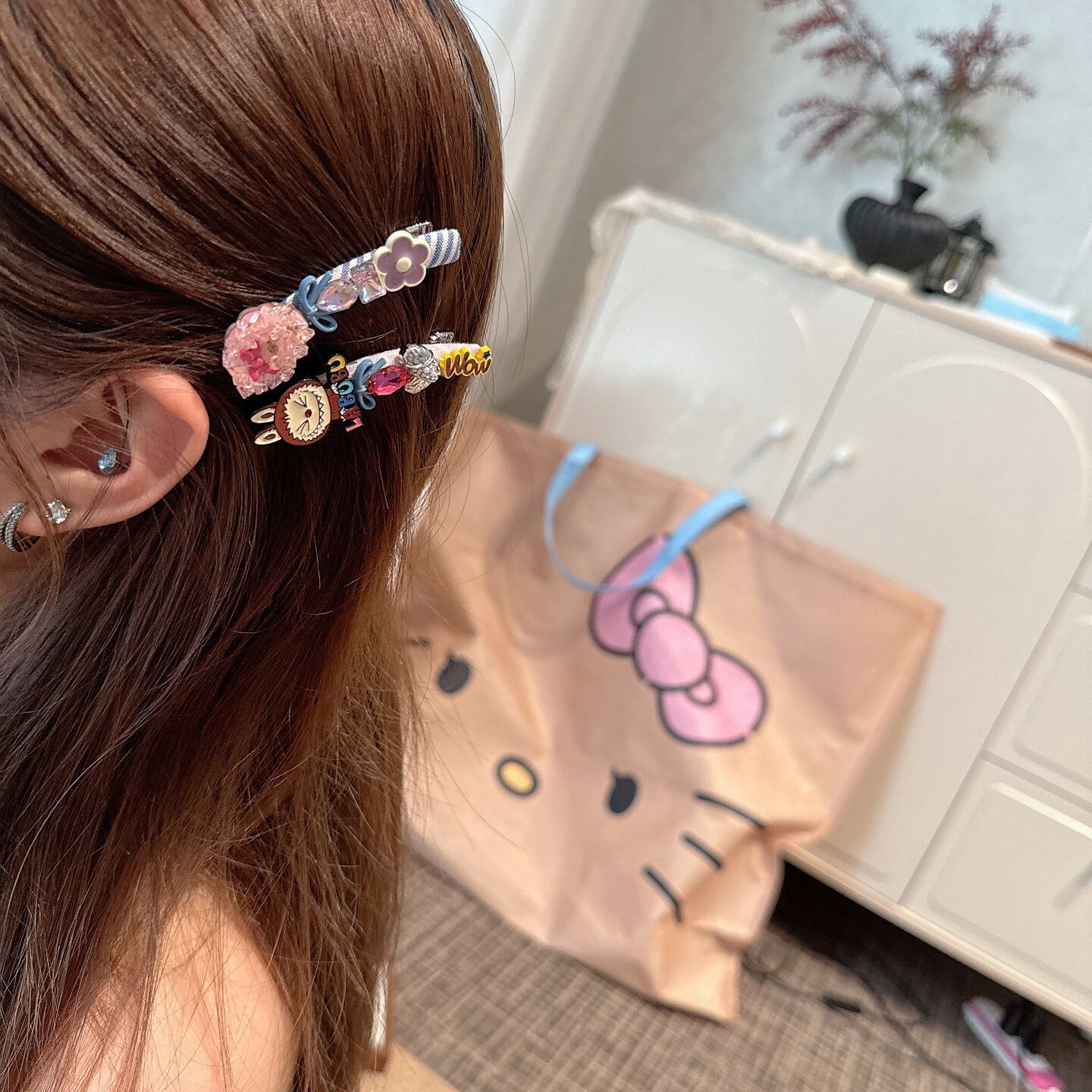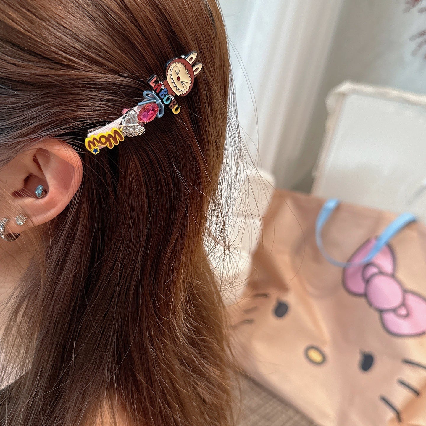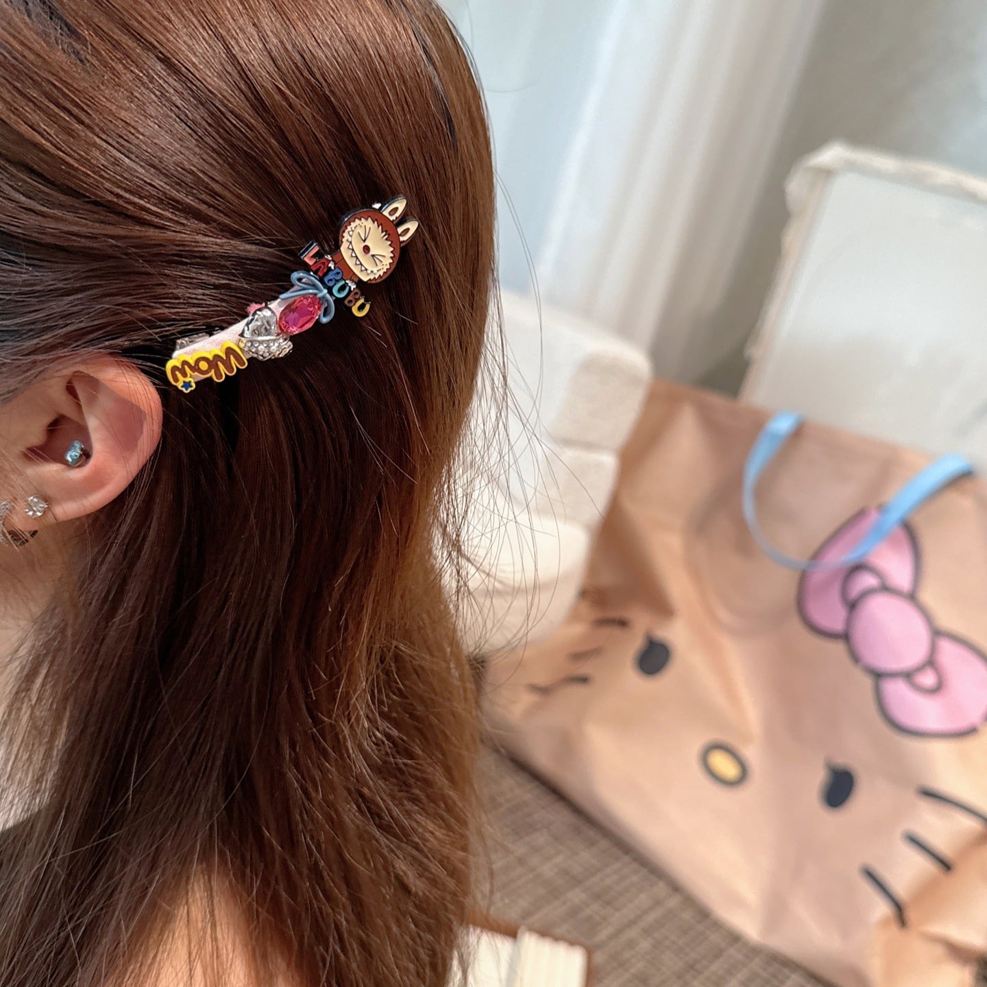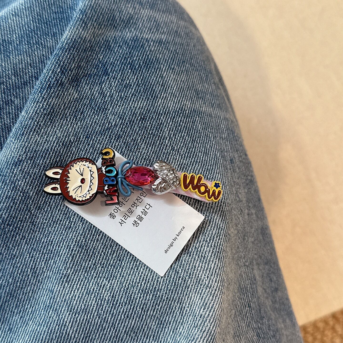 【商品名】2個入り♥【スイートクール】Labubu ラブブ レターピン ラインストーン ヘアクリップ 少女心をくすぐる 前髪 サイドヘア アクセサリー