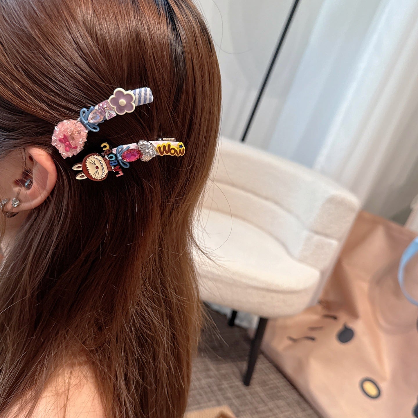 2個入り♥【スイートクール】Labubu ラブブ レターピン ラインストーン ヘアクリップ 少女心をくすぐる 前髪 サイドヘア アクセサリー