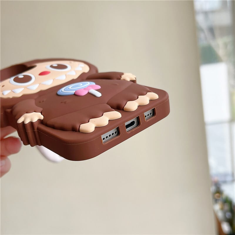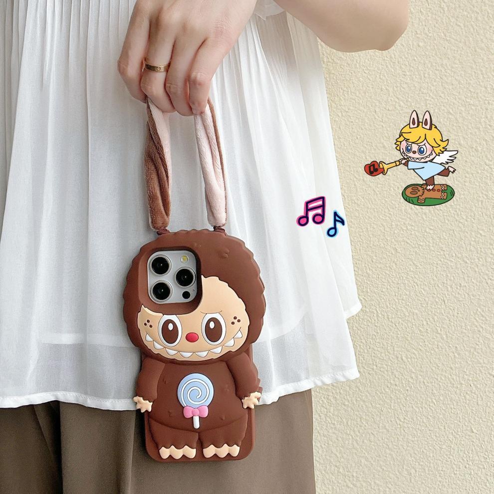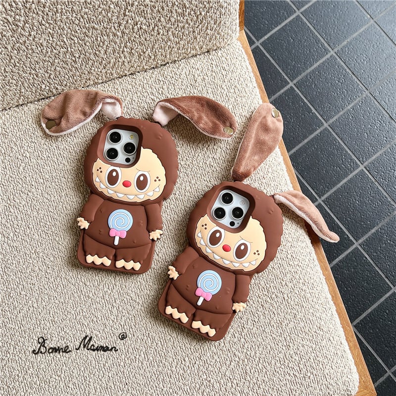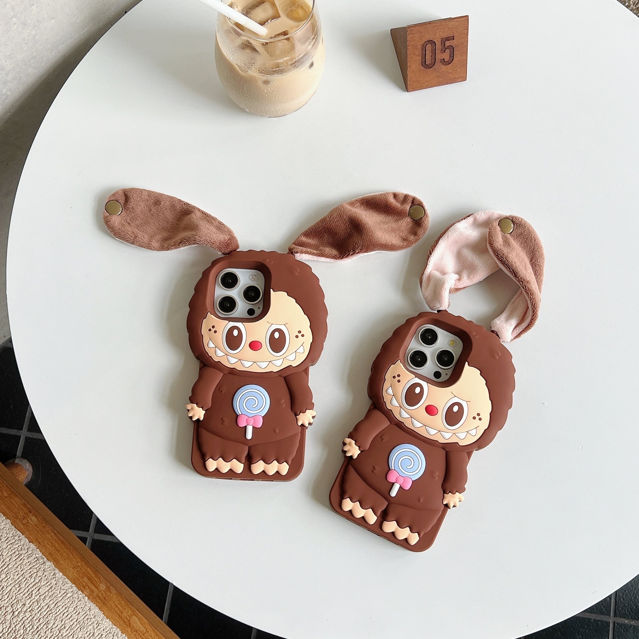 耳が取っ手に!ぷくぷく耳でめっちゃ可愛い!もふもふラブブ iPhone ケース ユニークで超かわいい ポーチ風iPhoneケース フリル耳 iPhone16 Pro Max/15/14/13/12/11 Pro対応 labubu