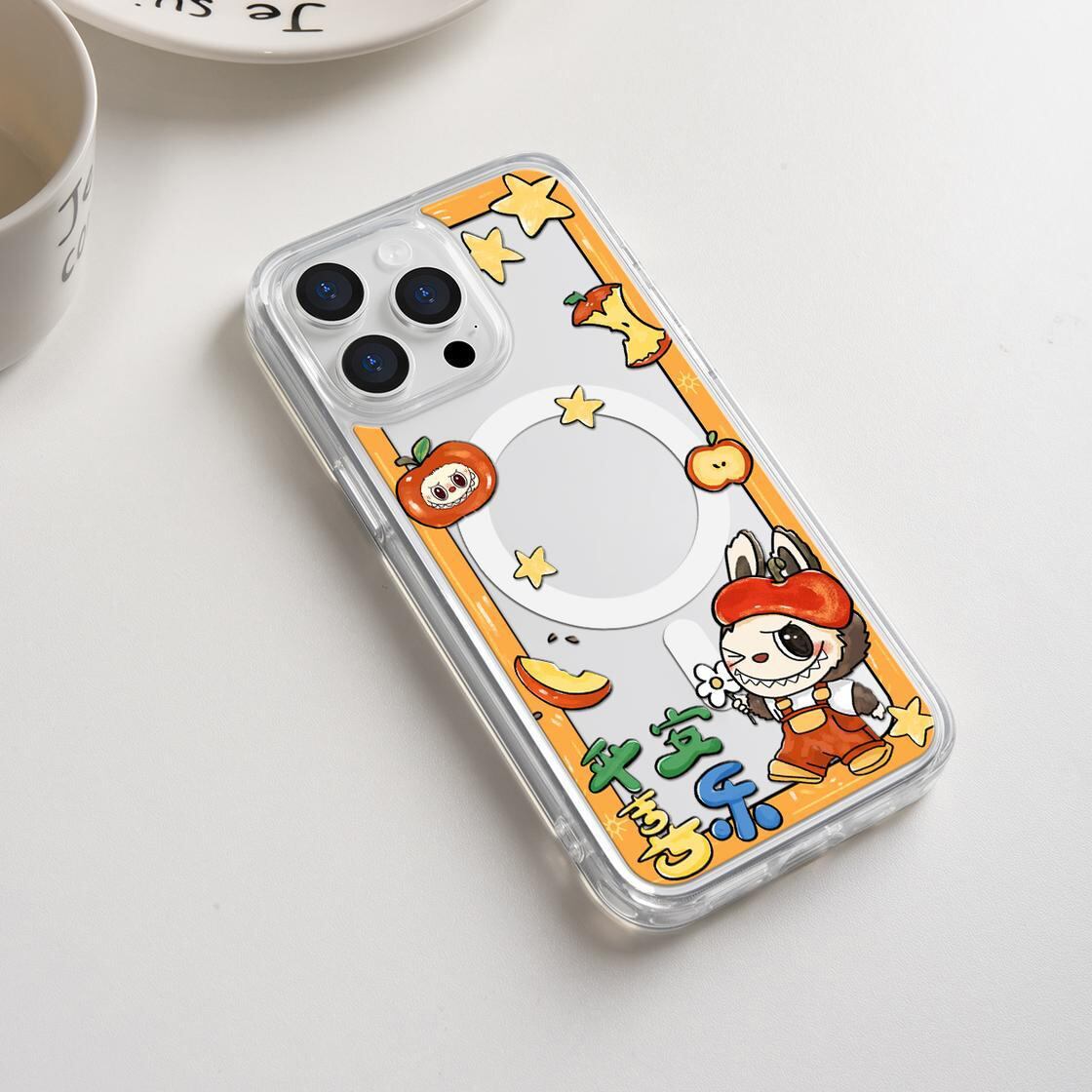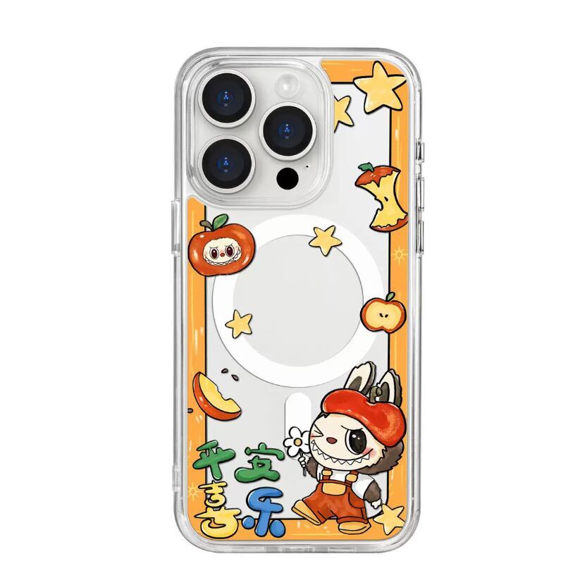 【 Labubu MagSafe 磁気ケース】平安喜楽 プリント 透明黒 クリアマグネットケース iPhone 17 Pro Max 16 Pro 15 14 13 対応 MagSafe 耐衝撃 カップル