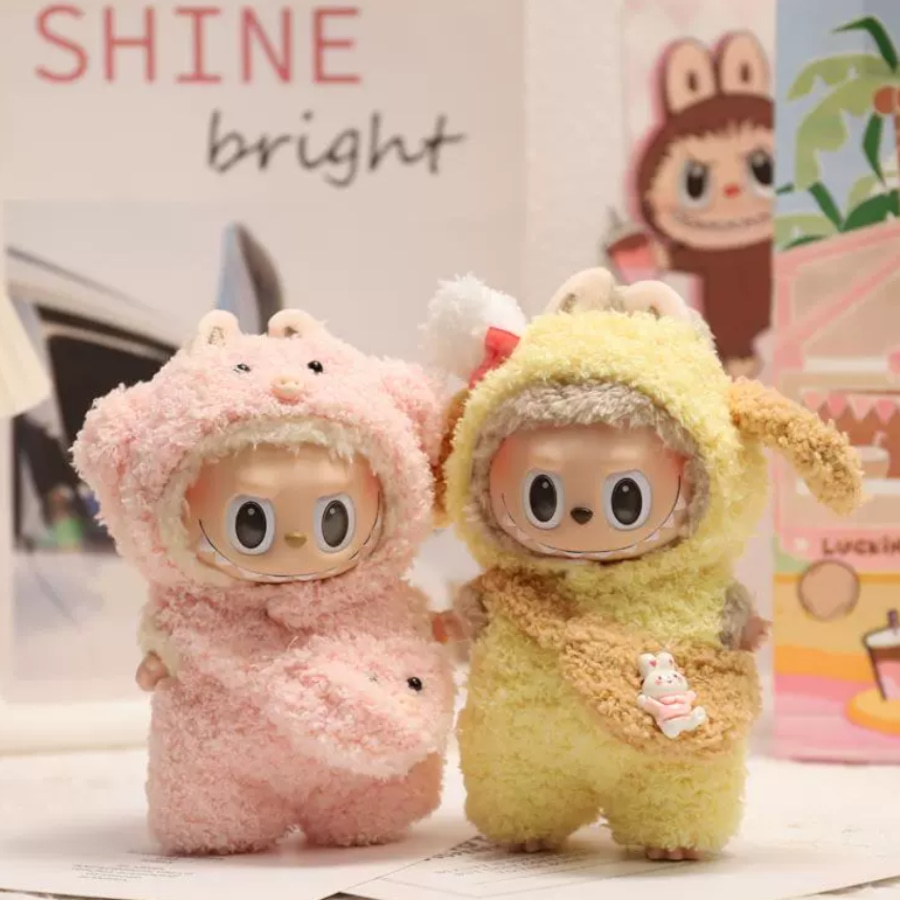 【ふわもこ 着せ替えできる!】labubu ラブブ 着せ替えセット 毎日のお洋服コーデが楽しめる! 15cm 17cm ぬいぐるみ 帽子とポーチ付き 萌え抜きの可愛さ ポーチ付き セット かわいい