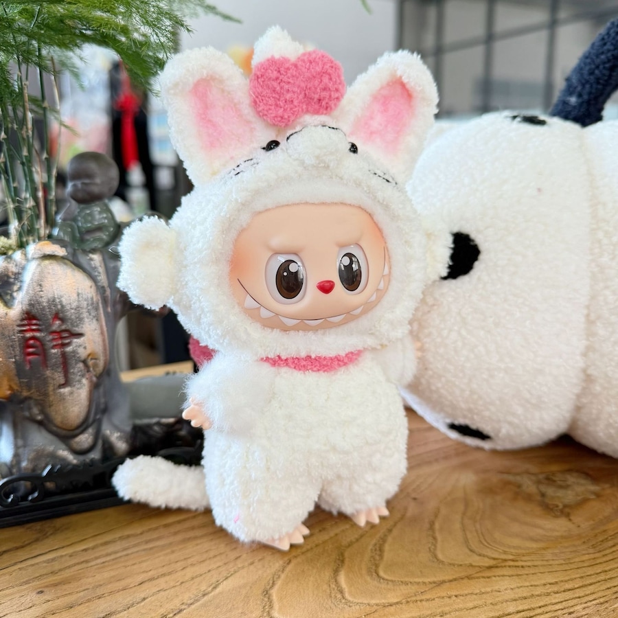 めっちゃ可愛い! 白猫コスチューム セット ラブブ ドール服 labubu 着せ替え 1/2/3世代 対応 ぬいぐるみ 衣装