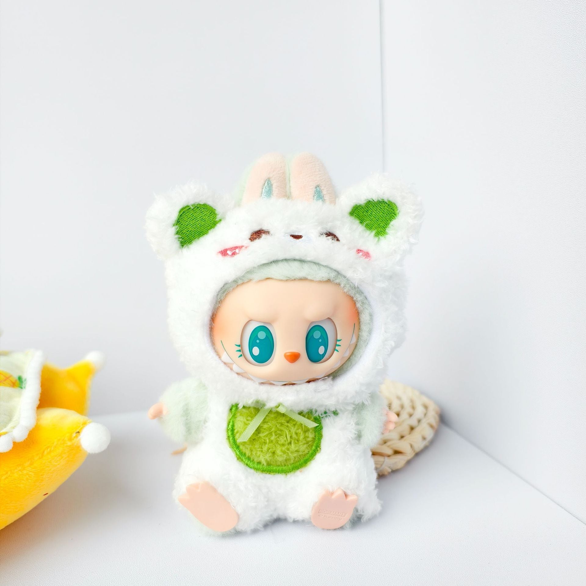 【商品名】【もちもちくまちゃん】labubu くまのコスチューム ラブブ 1/2/3世代 着せ替え ライム色 ふわふわ くま つなぎ 15cm 17cm 可愛すぎ!