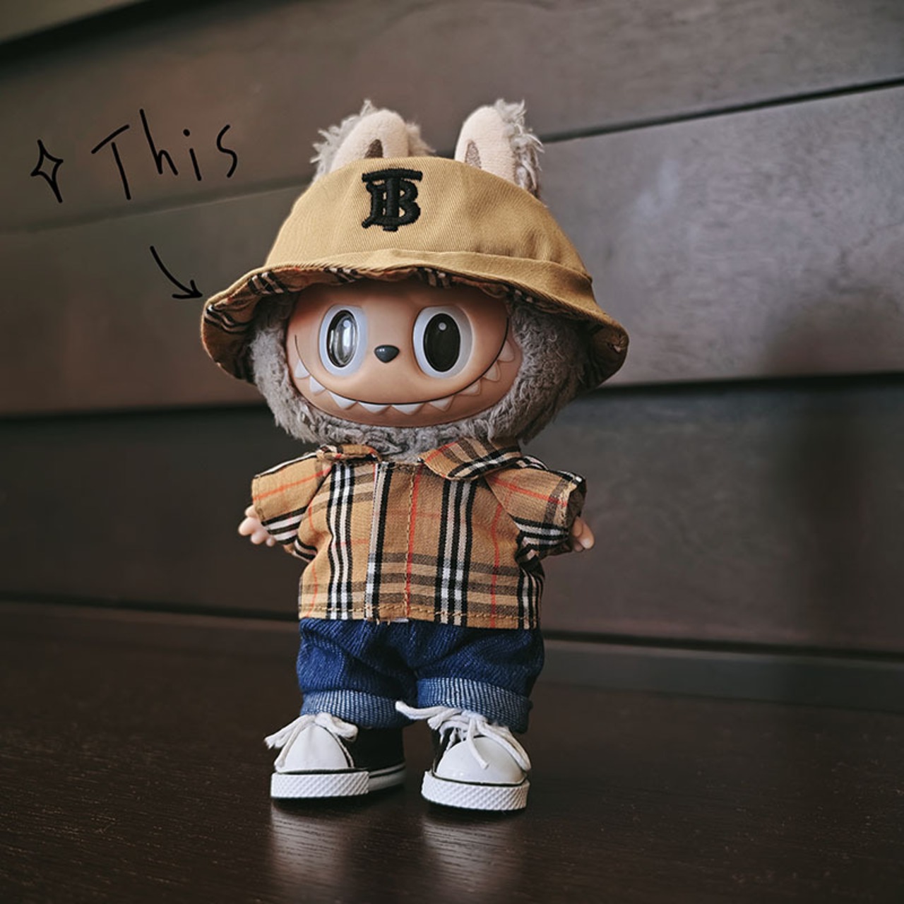 ロンドンの午後を散歩、ふたりおそろい!labubu ラブブ 1/2/3世代 着せ替え 上品おしゃれ チェックシャツ コーデ ロンドンテイスト