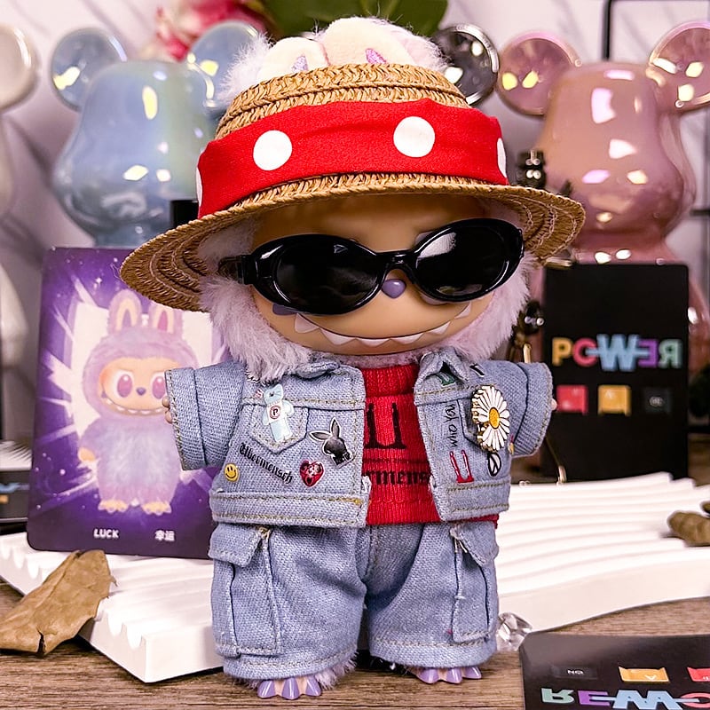 【商品名】究極のデニムコーデ!Labubu デニムコーデセット 7点セット - 最先端のおしゃれとクールな可愛さを両立 必須アイテム!クールで可愛い絶妙スタイルが完成