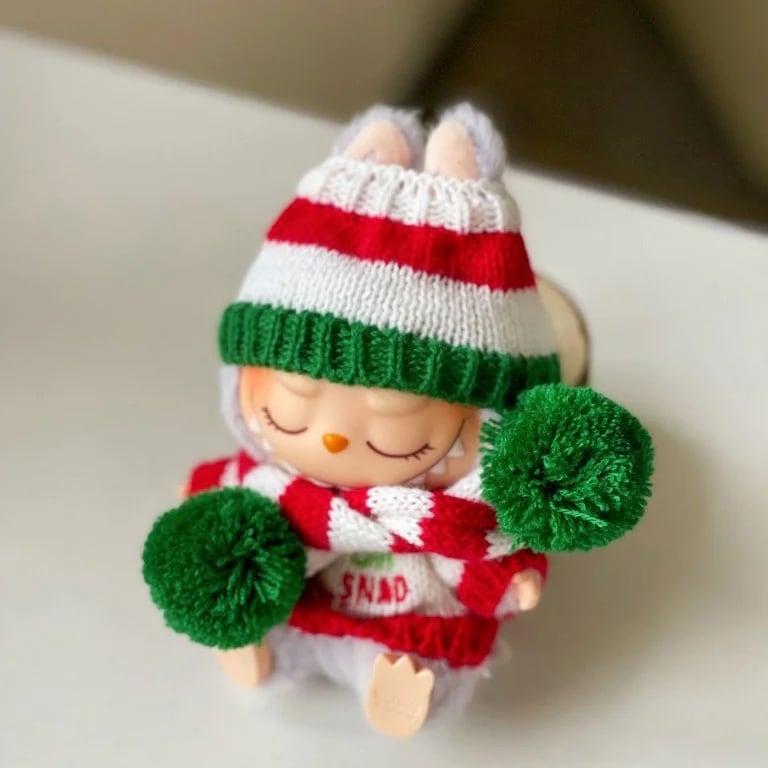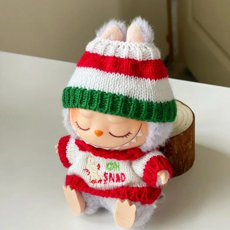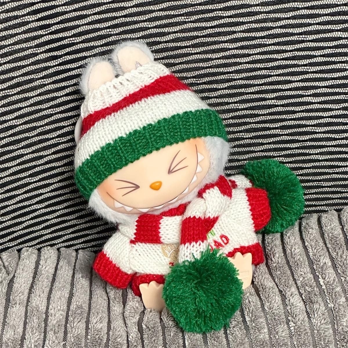 特大ポンポンが可愛い!labubu ラブブ クリスマスニット3点セット✨ 15cm17cm対応 ふわふわニットが可愛い