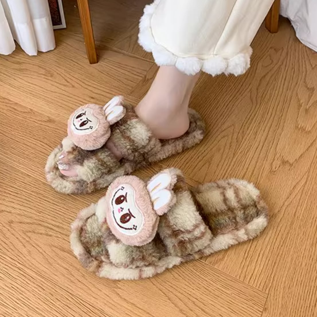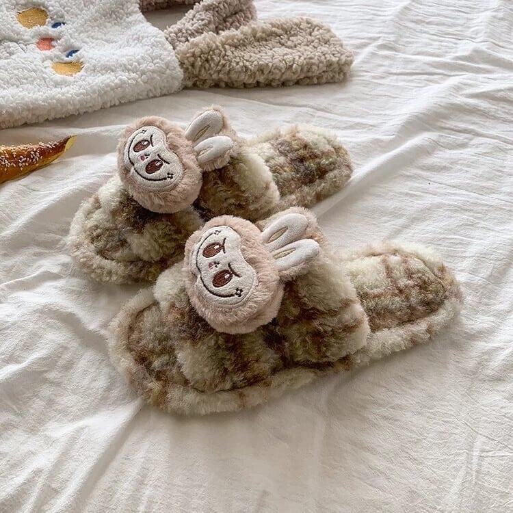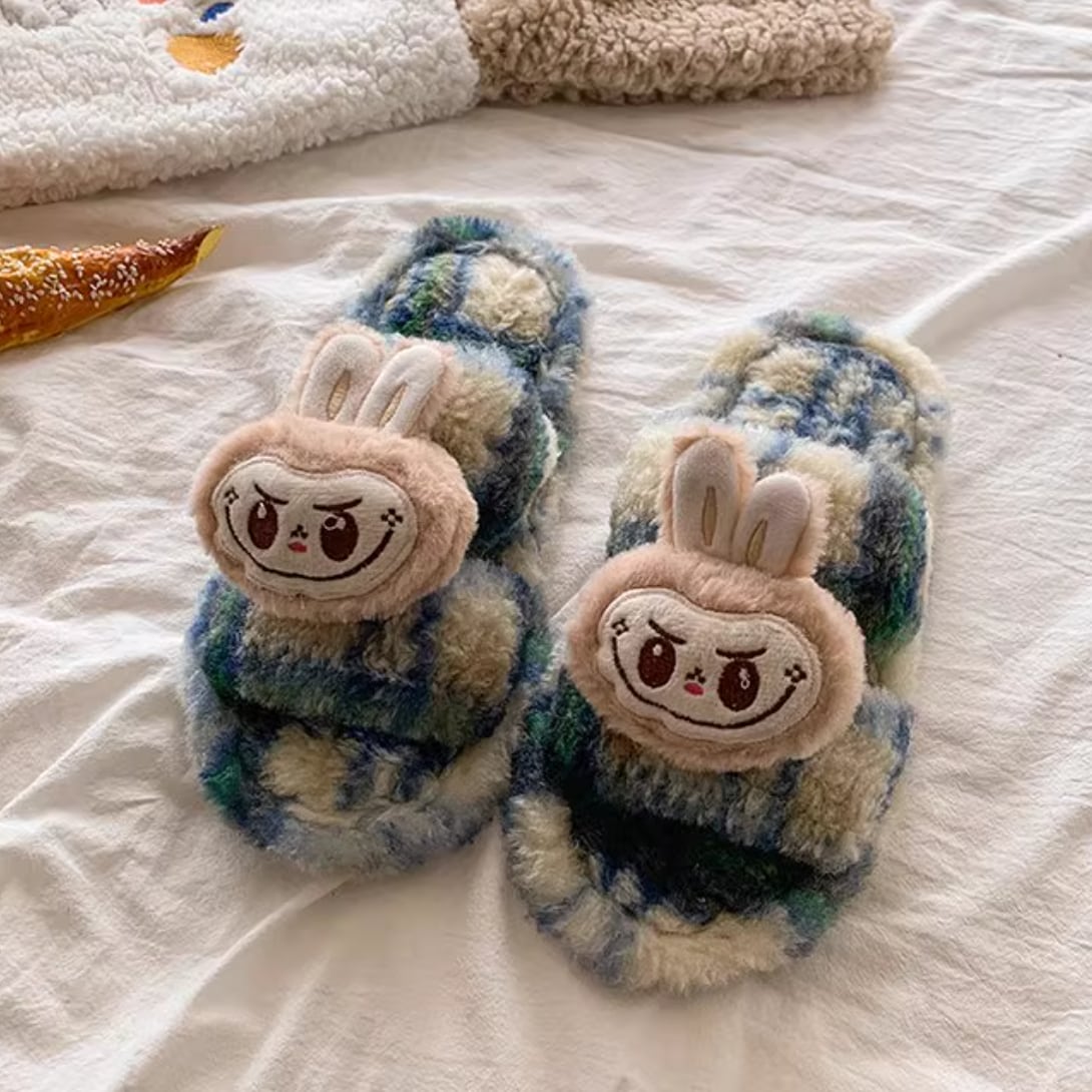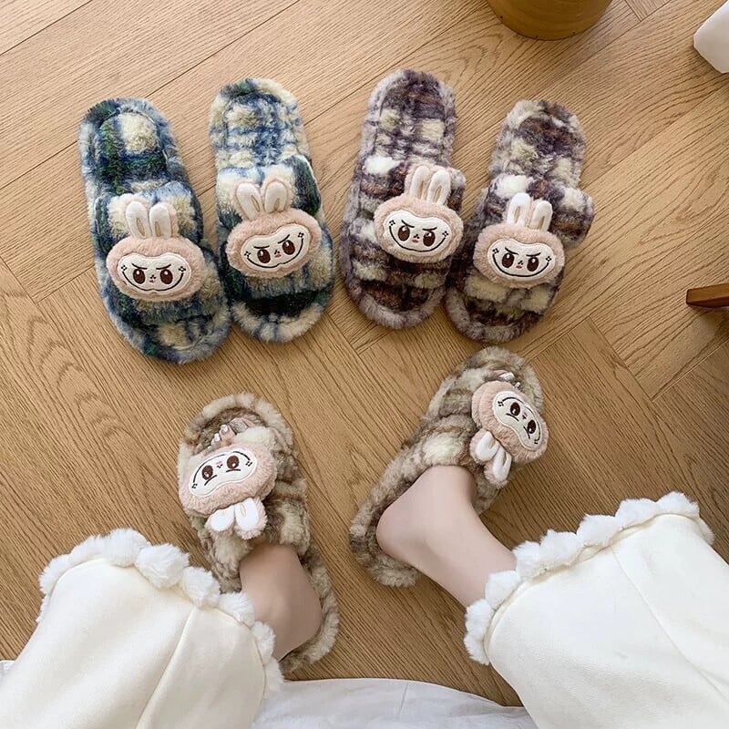 ふわふわの極上履き心地♡ ラブブ モフモフスリッパ 秋冬の定番 ❤ 女子に人気 ルームシューズ labubu 暖かい 室内履き