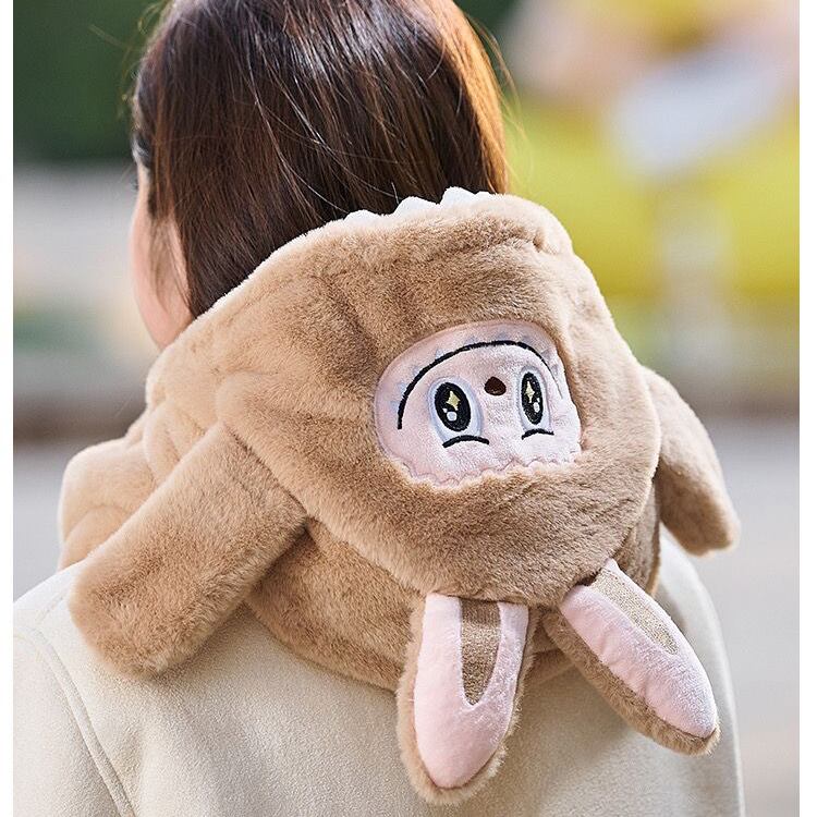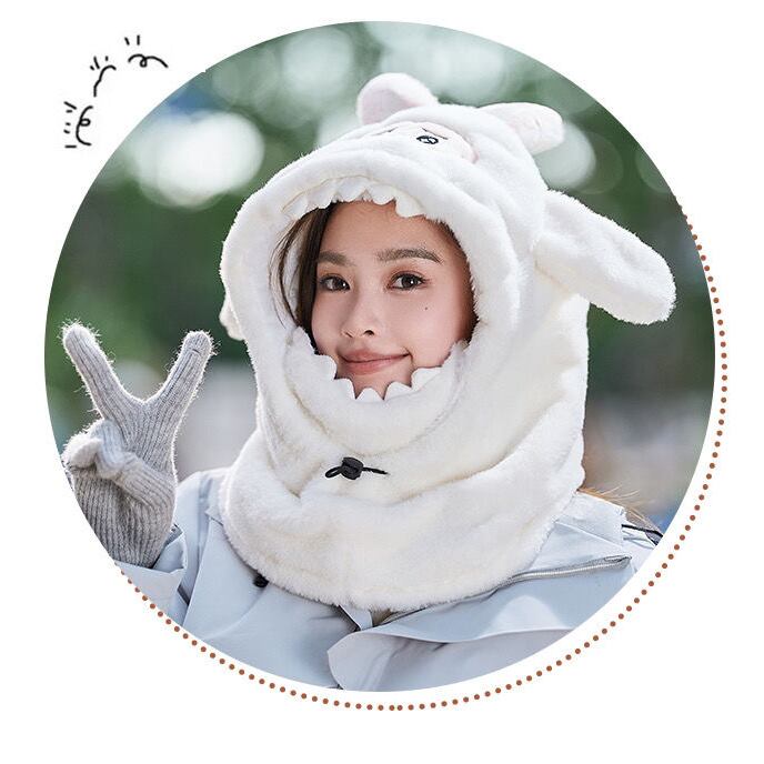 ラブブ風 モコモコ 防寒帽 耳あて付き ふわふわ 素材 冬 アウトドア スキー 自転車 対応 labubu